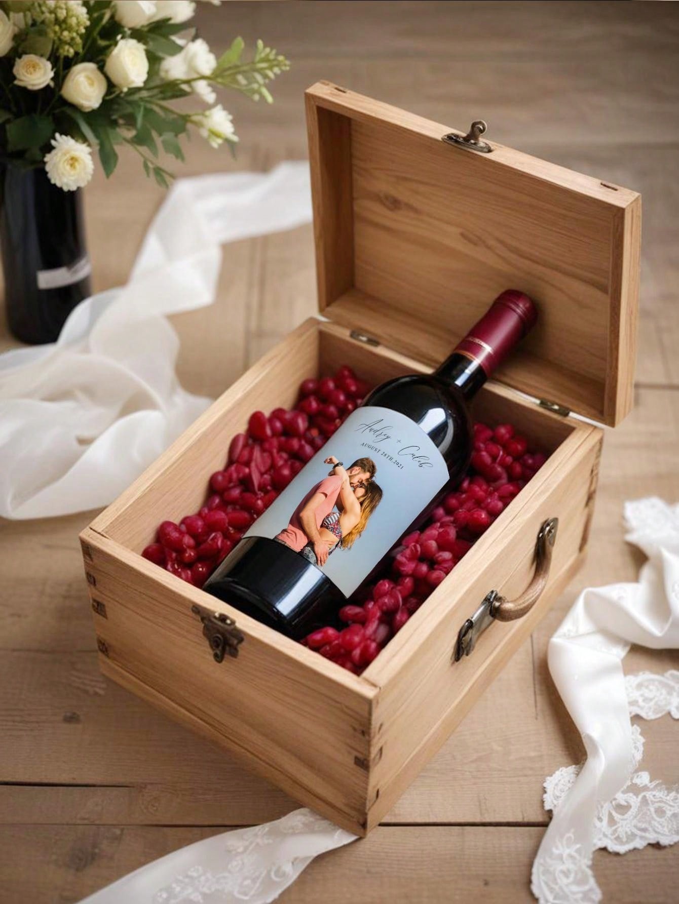 Create unforgettable gifts with custom wine bottle labels—featuring your own photo, names, and special date, printed on high-quality stickers.