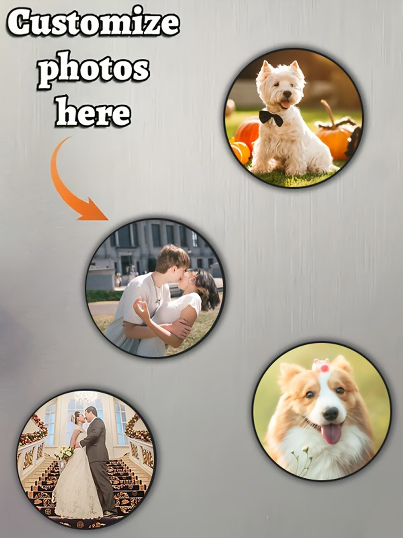 Ces photo-aimants circulaires ne sont pas seulement décoratifs mais aussi significatifs. Ils font des cadeaux merveilleux pour les amis et la famille les anniversaires, les anniversaires ou les vacances. Que vous souhaitiez créer un souvenir pour vous-même ou surprendre quelqu'un de spécial, la personnalisation est simple et rapide à travers«Kstom».