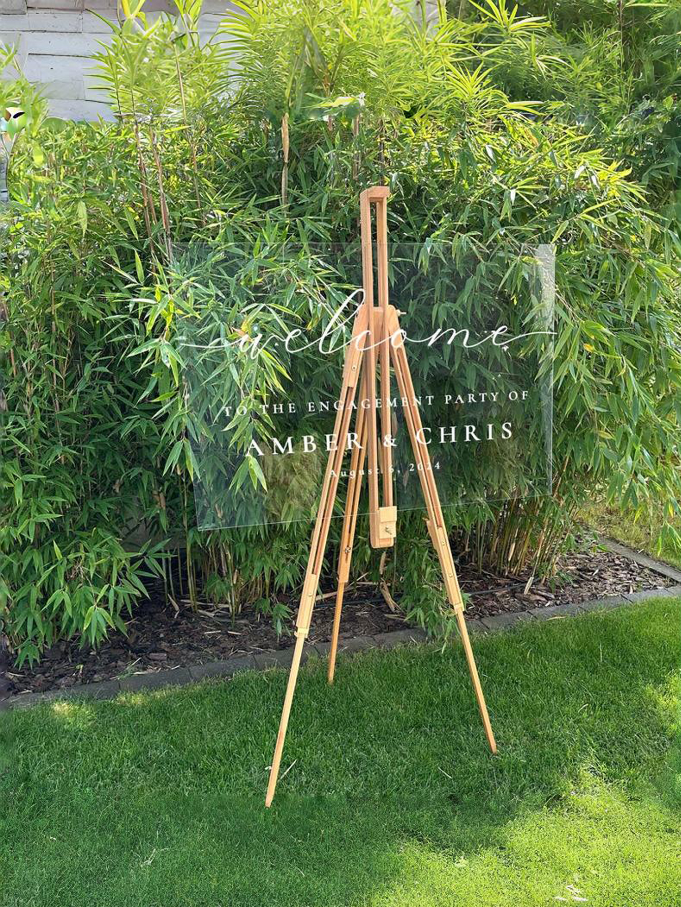 A sleek acrylic welcome board designed for weddings and special events. Fully customizable to reflect your unique celebration.