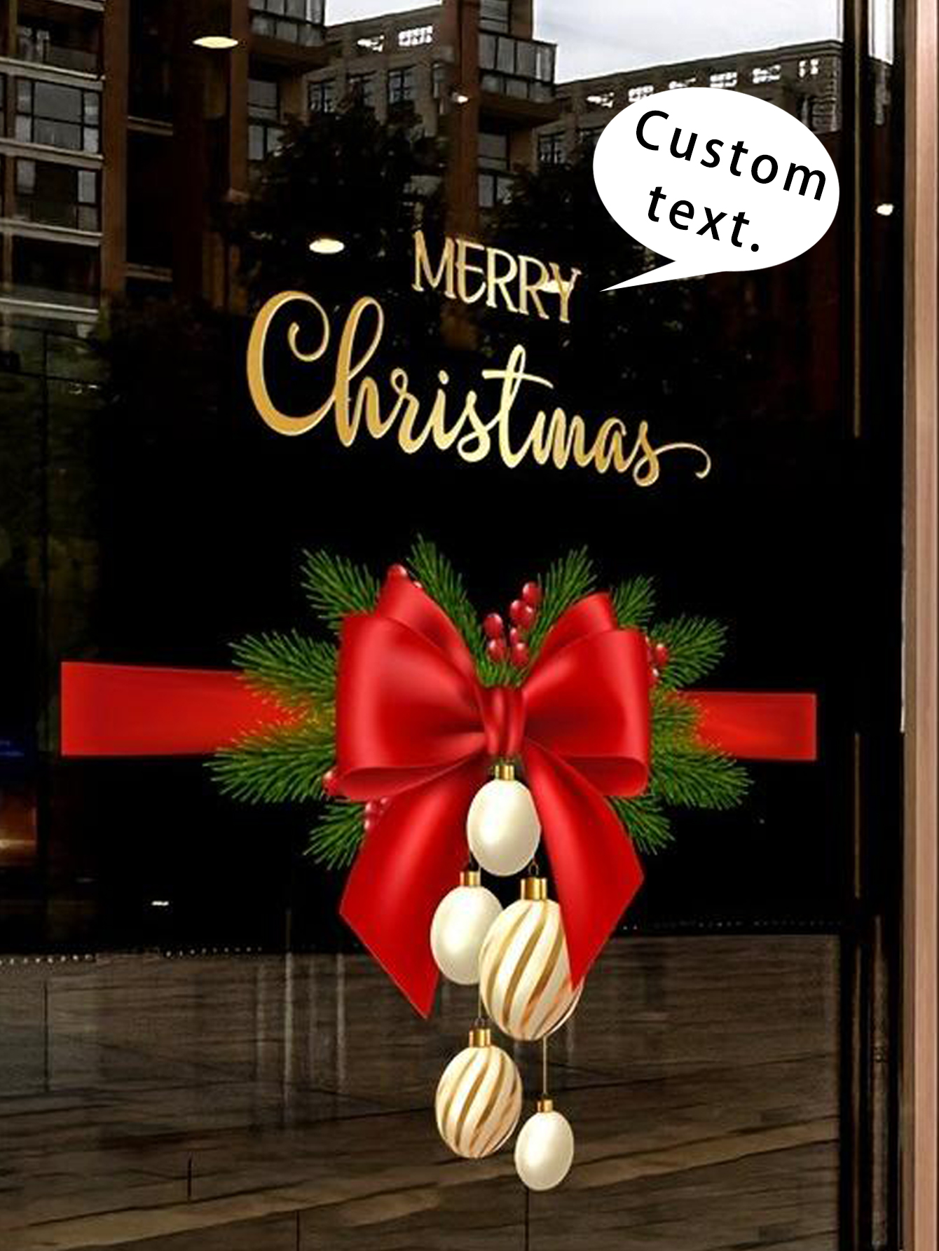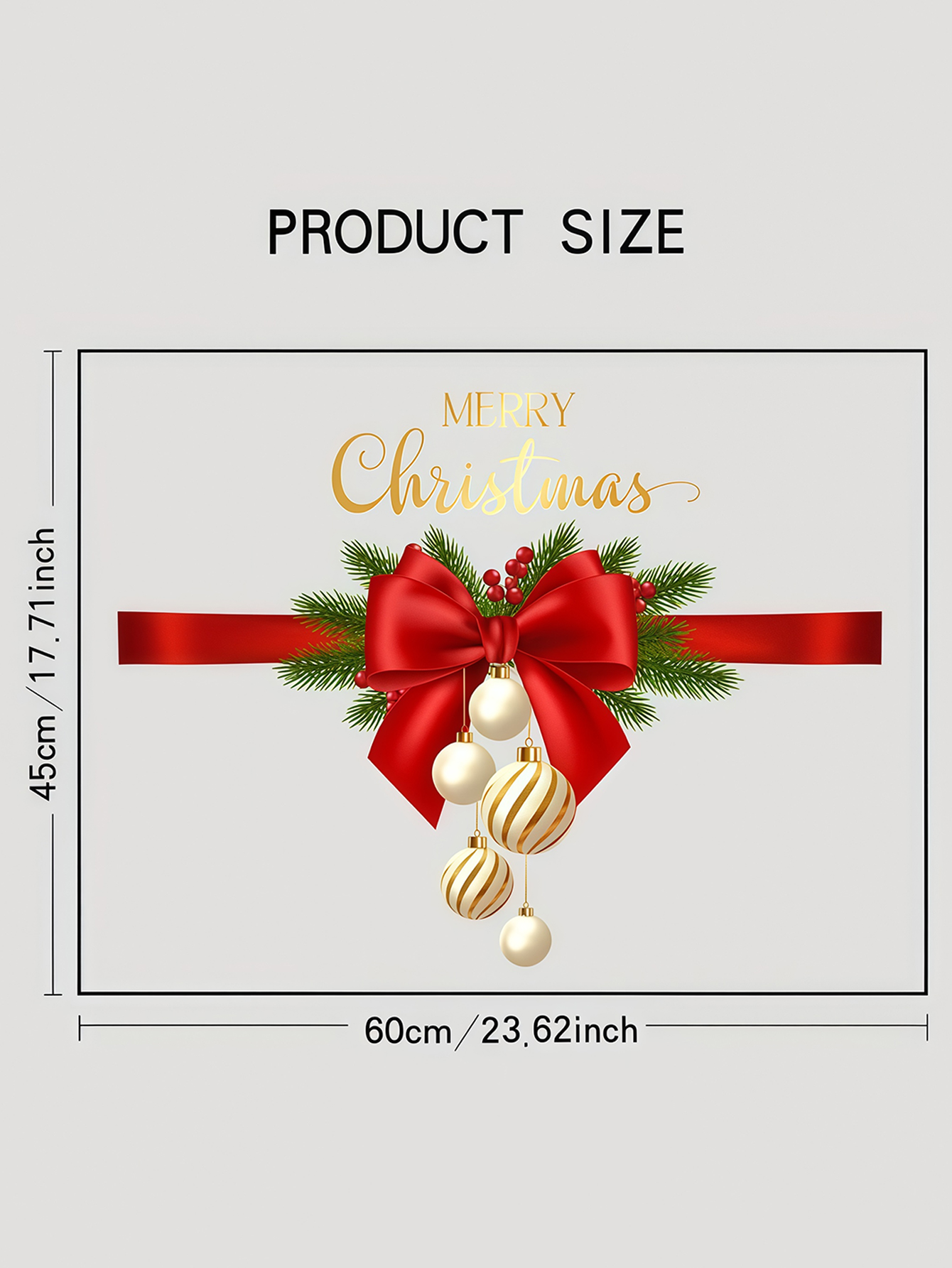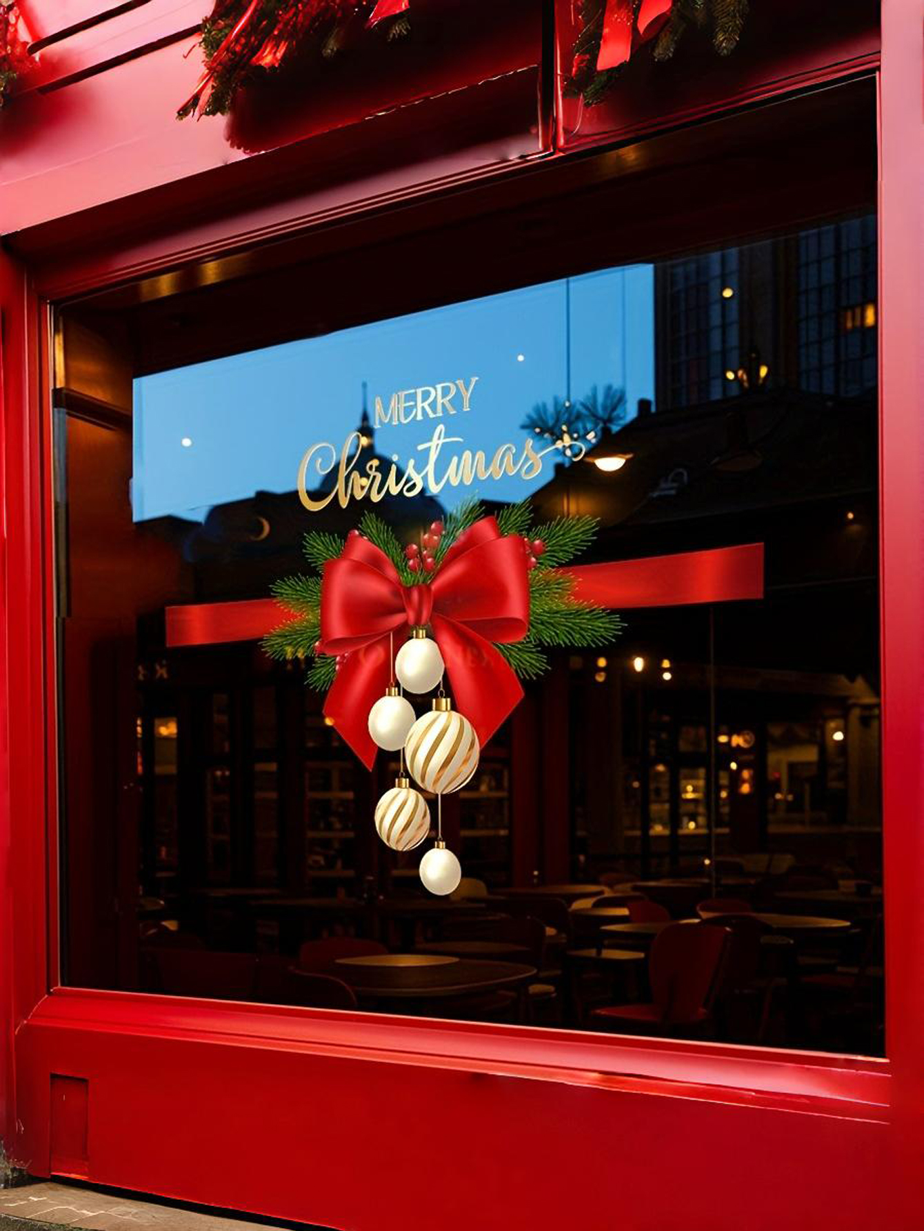 Bring the holiday spirit into your home or shop with this Christmas Bow Glass Decoration Sticker. Featuring a bold red bow, gold ornaments, and lush green accents, this sticker is designed to make your windows stand out during the festive season.