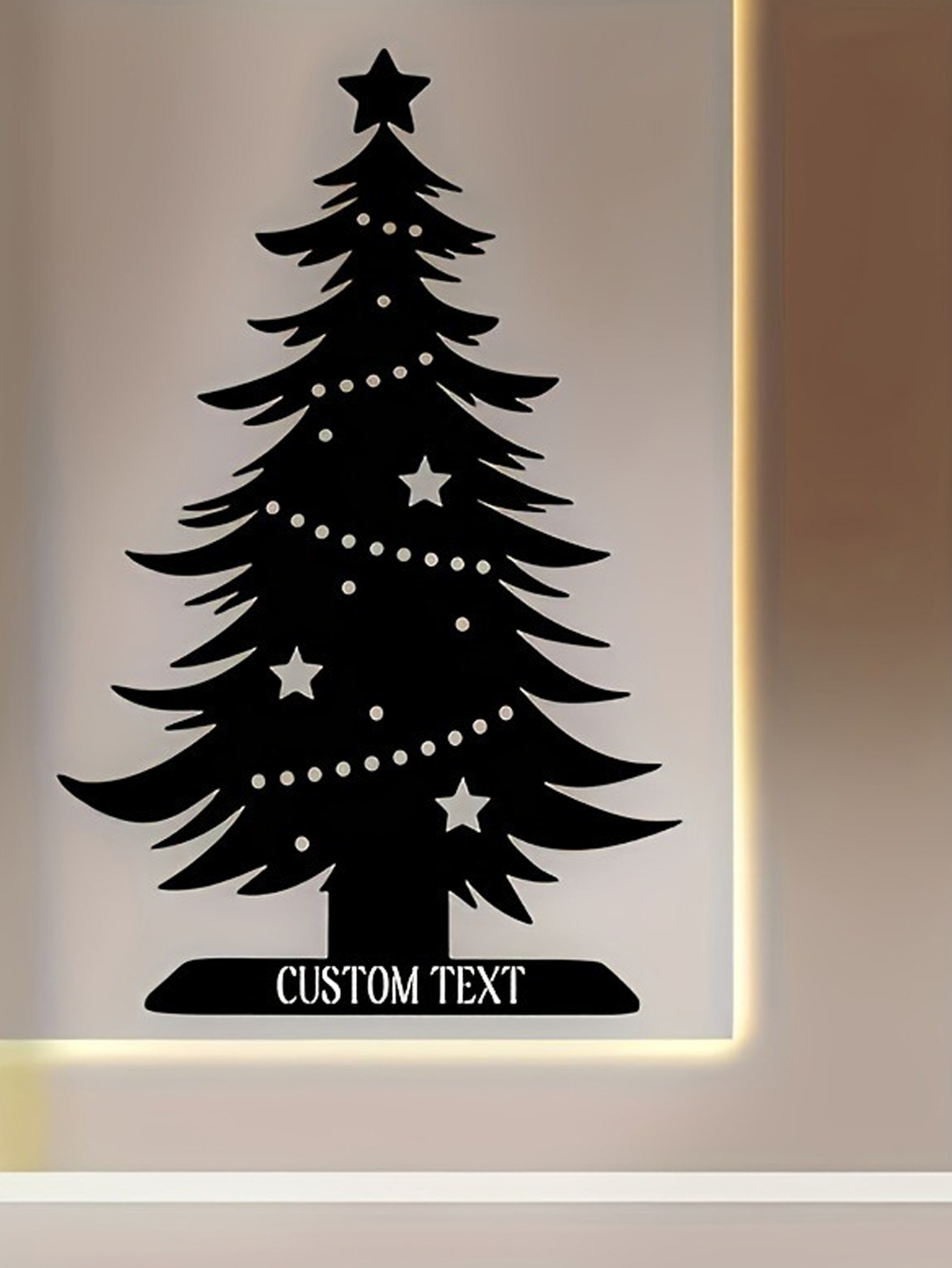 Celebrate Christmas with this elegant iron tree sign, customizable with your text to bring warmth and personality to your holiday décor.