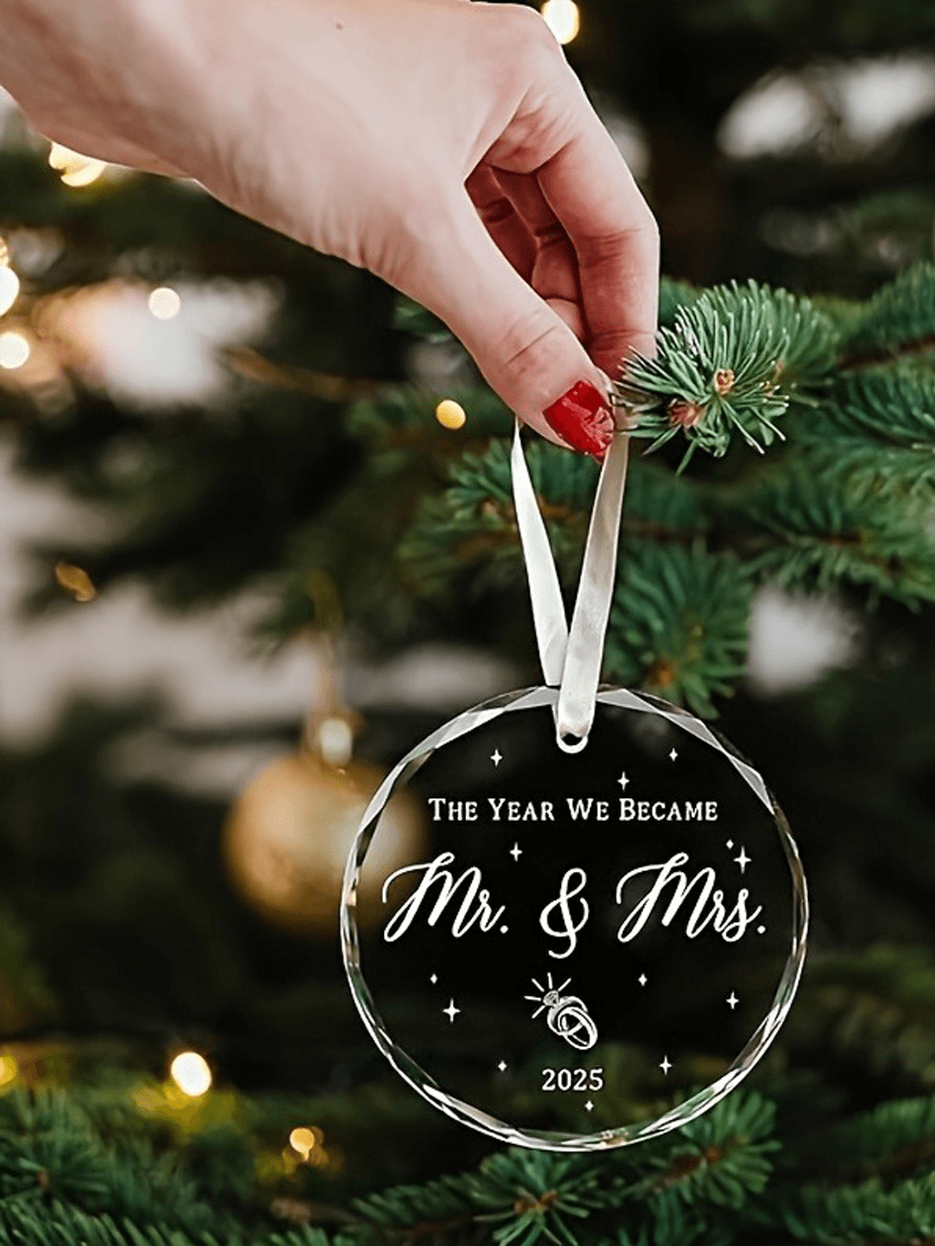 Made from high-quality transparent acrylic, the ornament has a smooth, sleek finish that reflects the glow of Christmas lights beautifully. You can customize the text with names, dates, or a short message to create a one-of-a-kind keepsake that celebrates your memories.