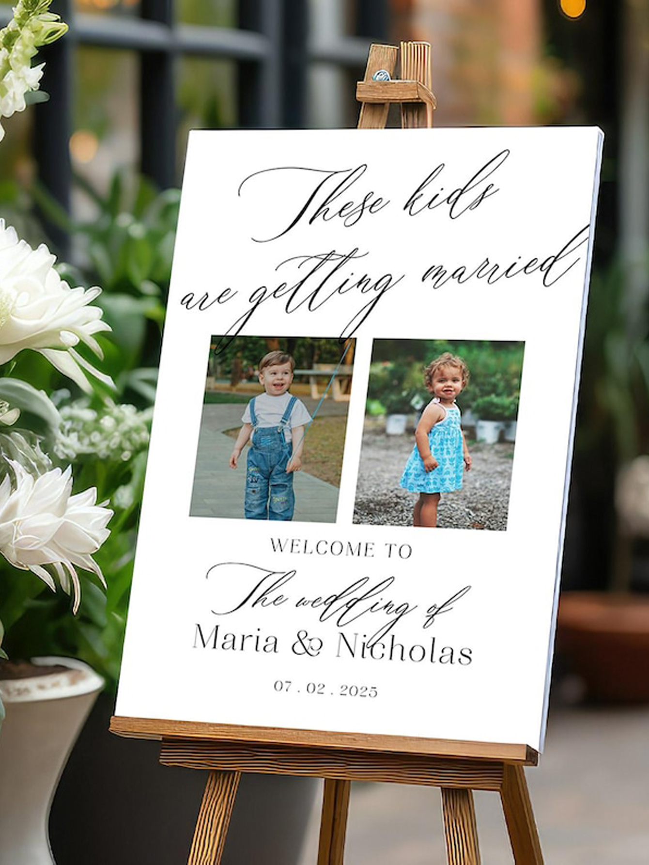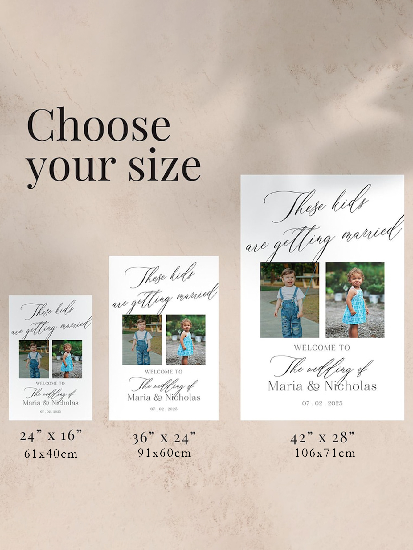 Available in multiple sizes (24” x 16”, 36” x 24”, 42” x 28”), it’s versatile enough for intimate weddings or large celebrations. The sign is easy to display on an easel or stand and doubles as a meaningful keepsake to cherish after the ceremony.