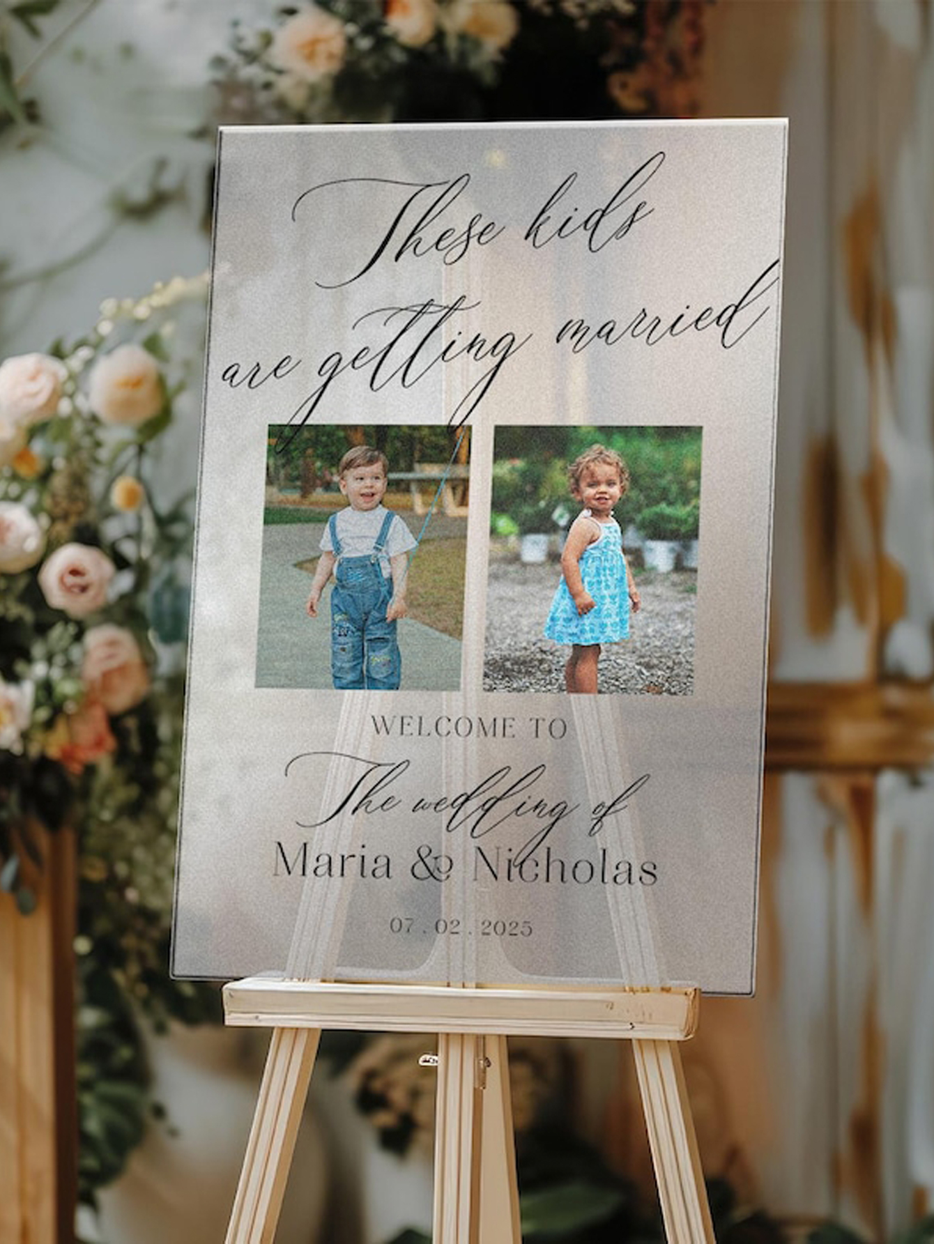 Crafted from high-quality clear acrylic, the sign delivers a sleek and modern look that pairs well with any wedding theme. You can customize it with your favorite photo, names, and wedding date, creating a one-of-a-kind piece that reflects your love story.