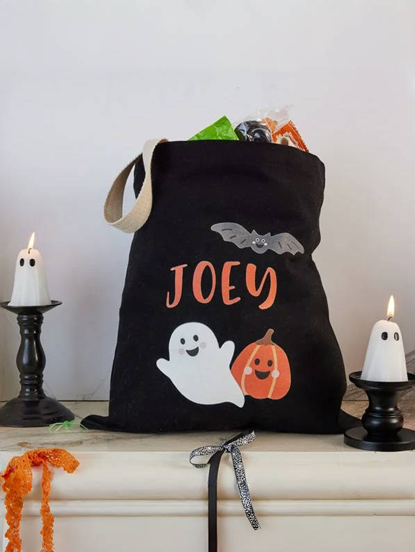 Crafted from durable, reusable fabric, this bag is large enough to hold plenty of candy while remaining lightweight and comfortable for kids to carry. The highlight? You can personalize it with your child’s name or custom text, ensuring their bag stands out during trick-or-treating and parties.