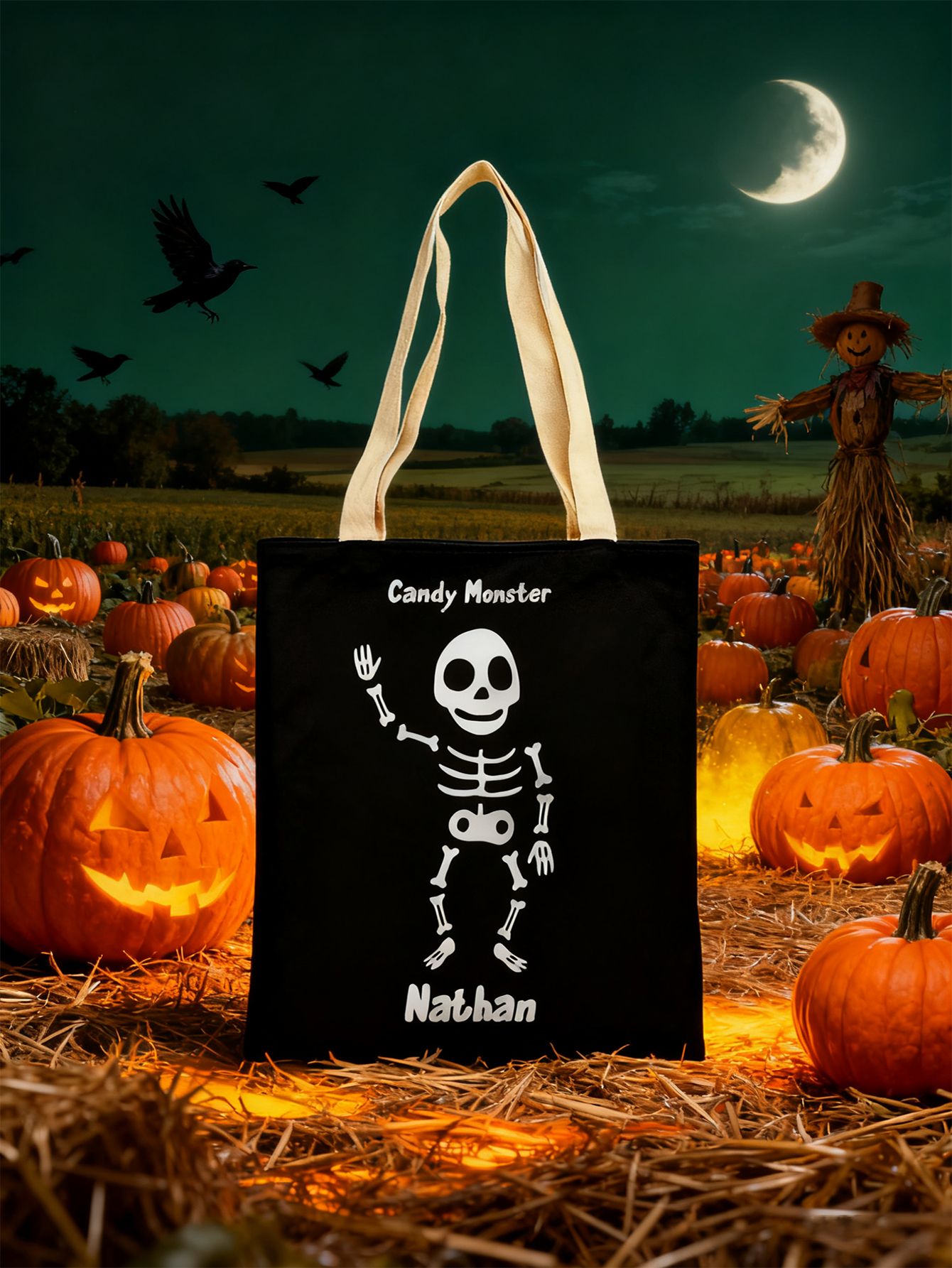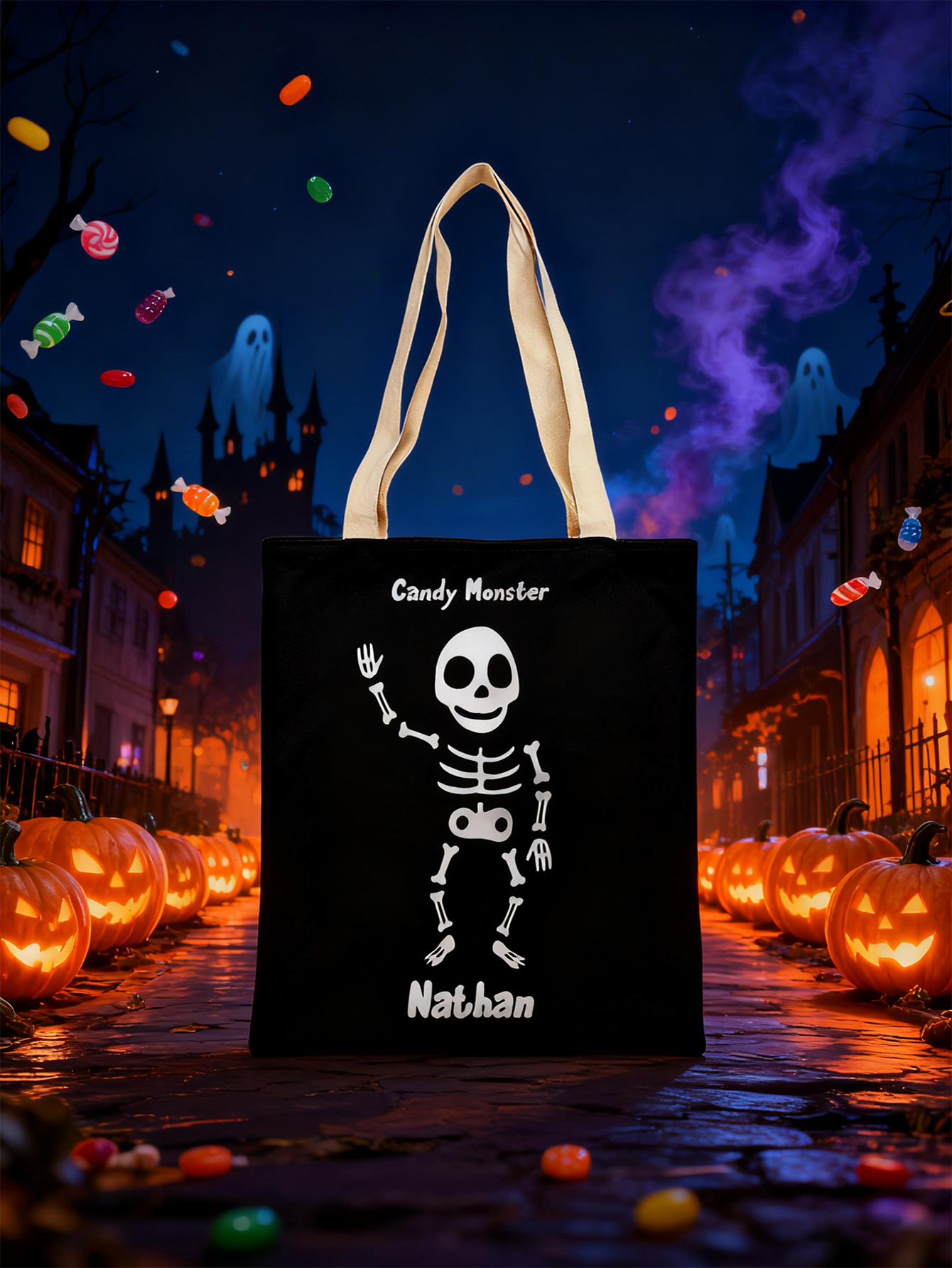 Celebrate Halloween in style with the Custom Halloween Skeleton Candy Bag, the perfect mix of fun, spooky, and practical. Whether your child is going door to door for trick-or-treating, or you’re stocking up on goodies for a Halloween party, this bag is built to handle it all.