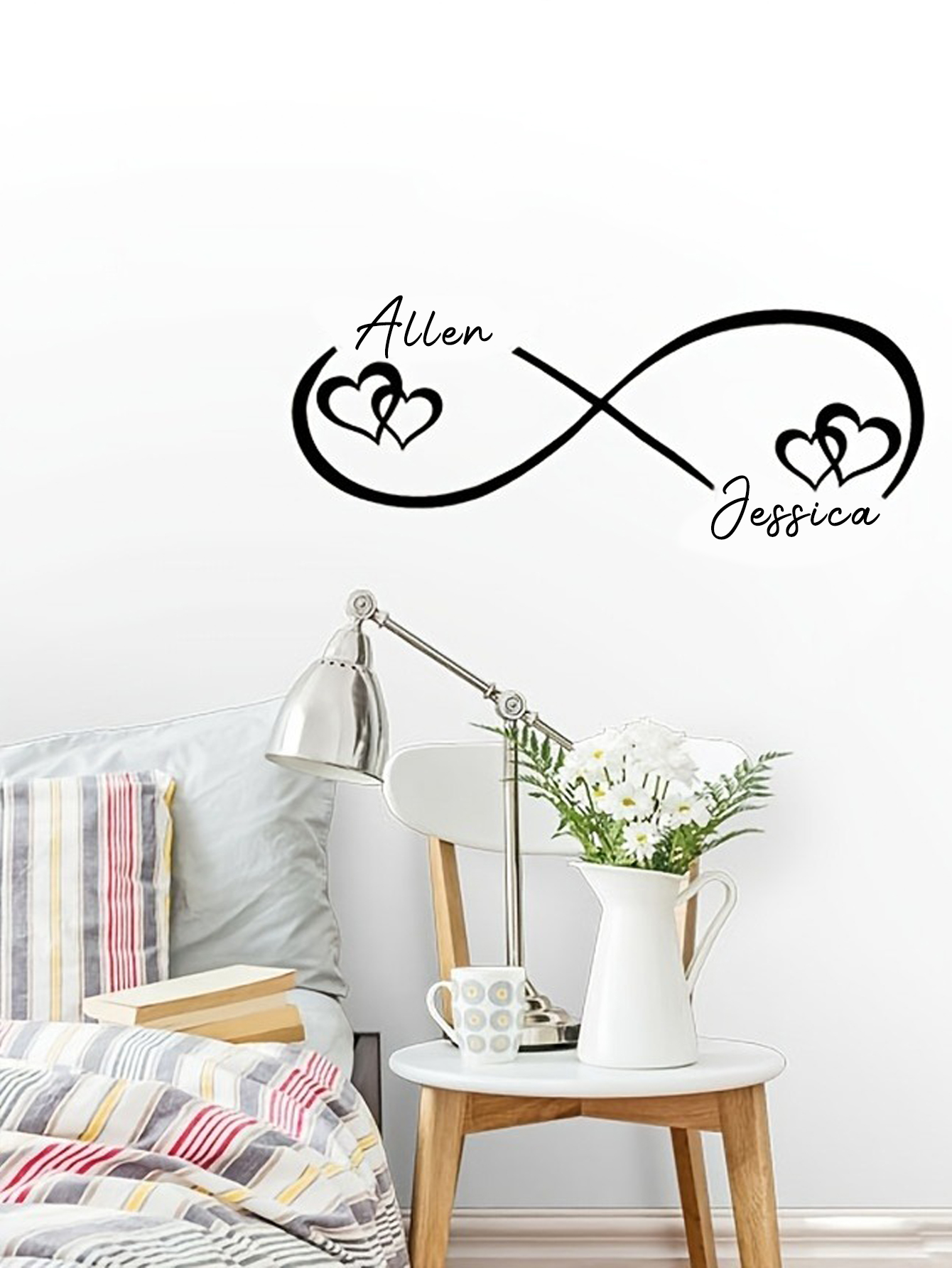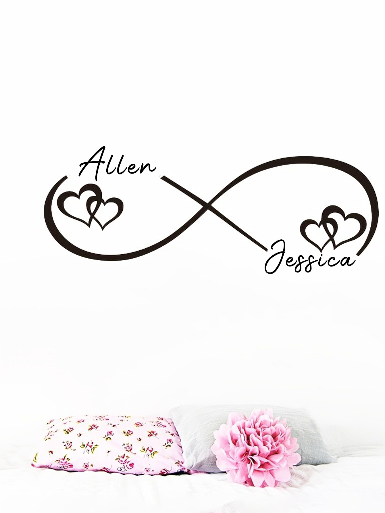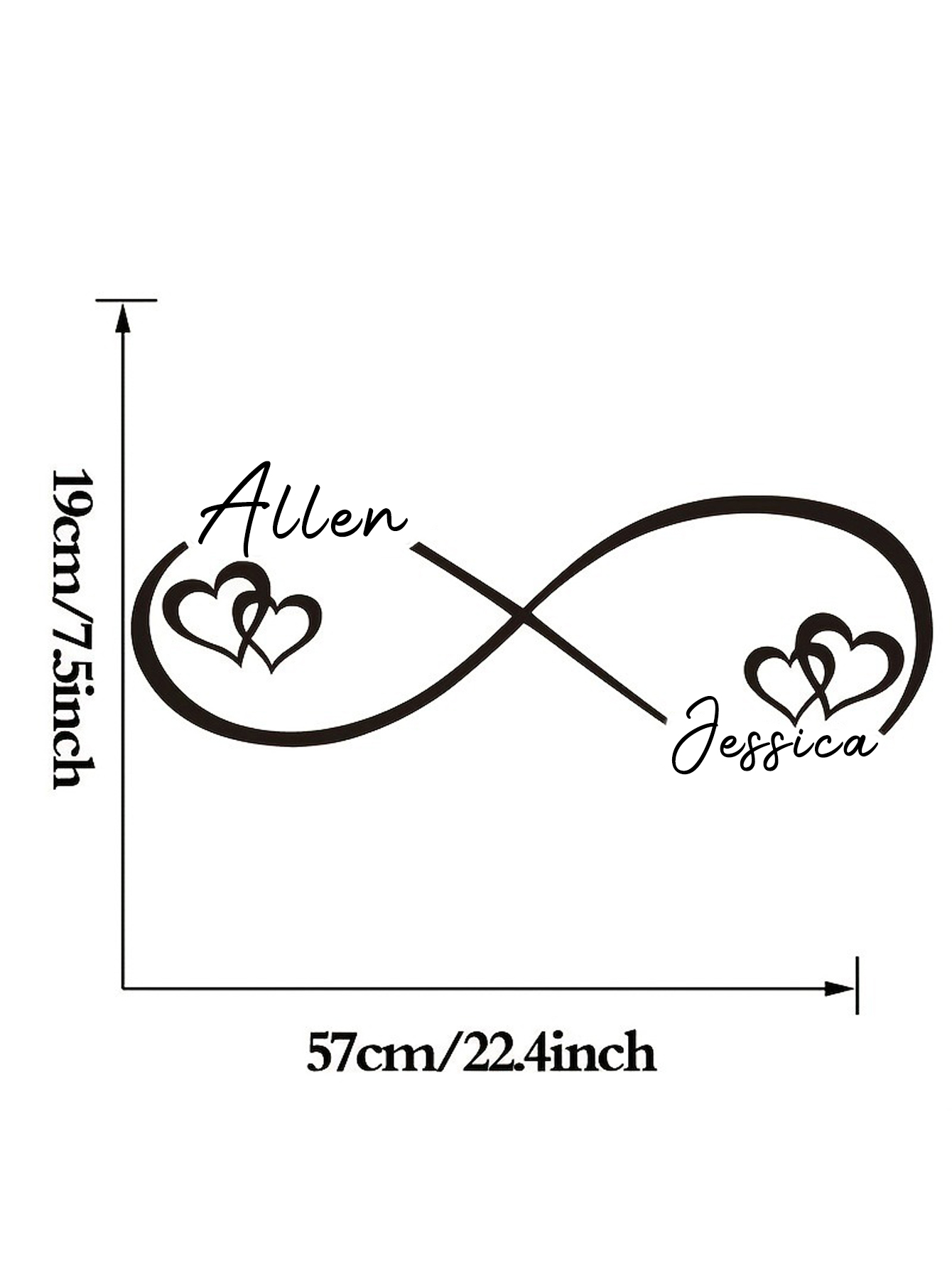 Transform your walls into a symbol of everlasting love with our Custom Infinity Heart Wall Sticker. This elegant design features an infinity loop with two hearts, customized with the names of your choice, making it the perfect way to celebrate a relationship, friendship, or family bond.