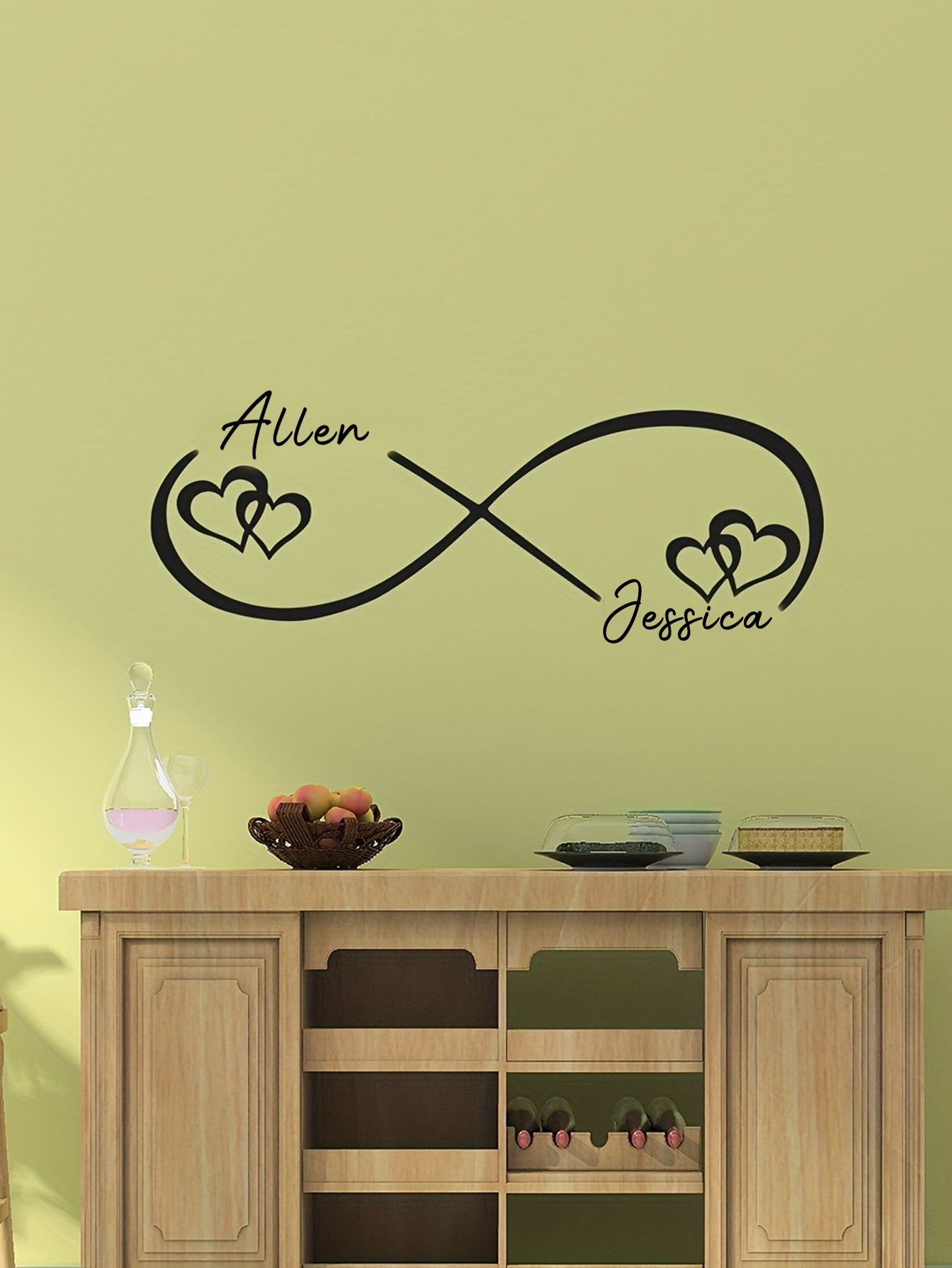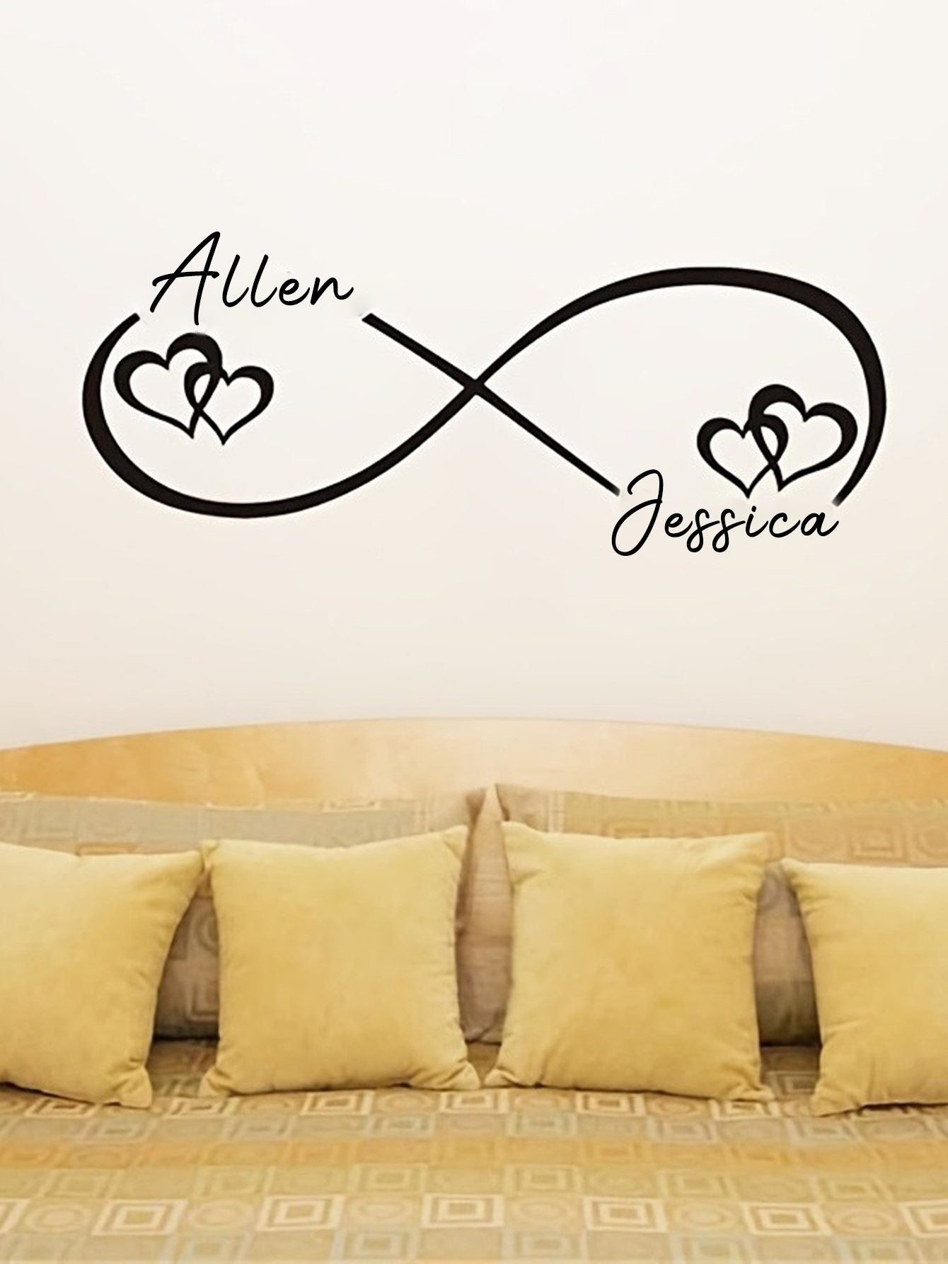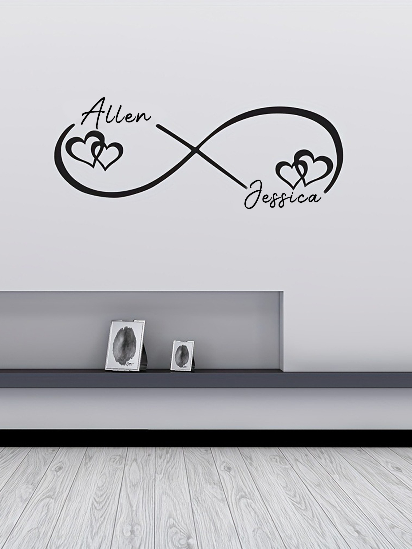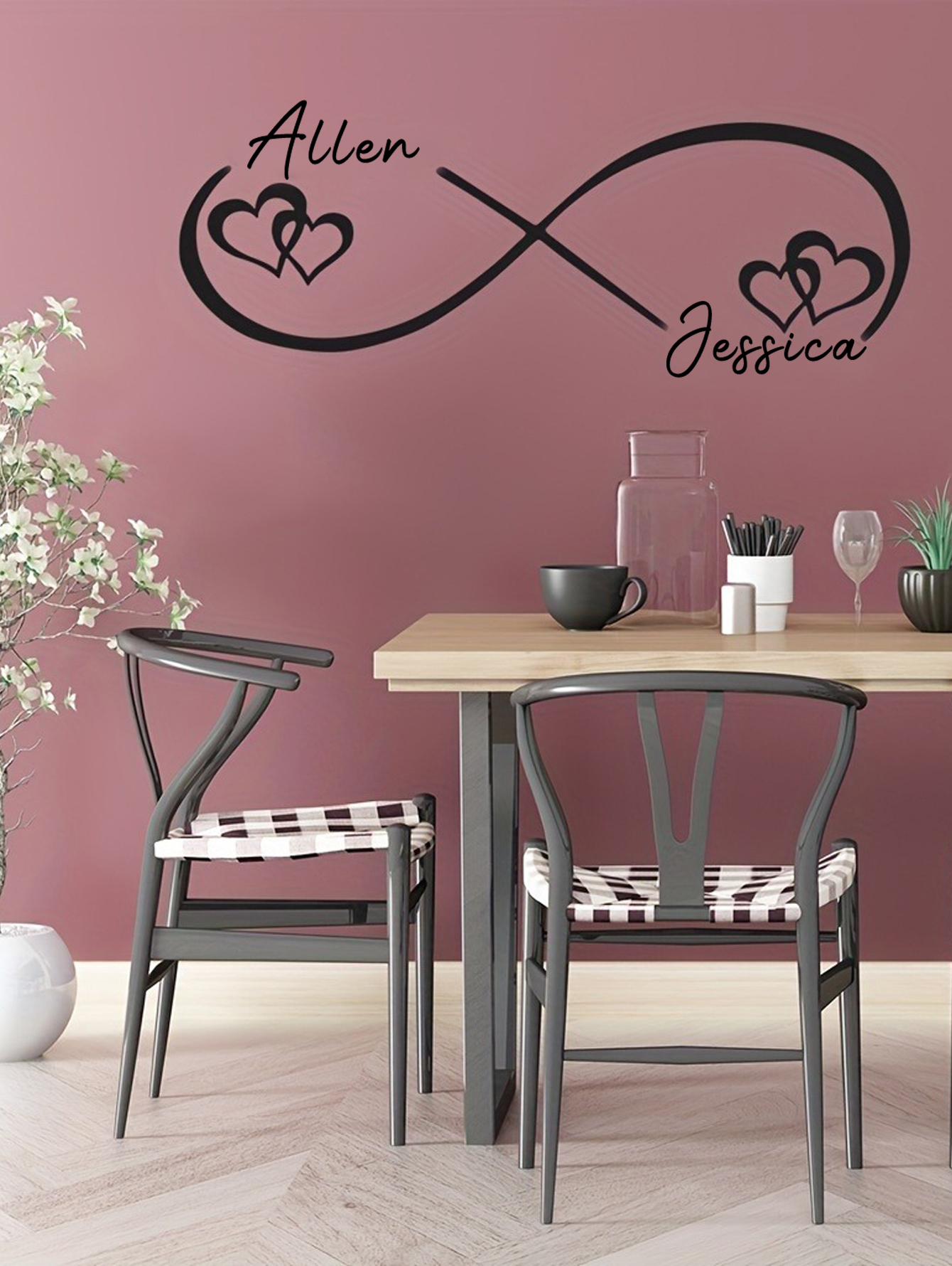 Transform your walls into a symbol of everlasting love with our Custom Infinity Heart Wall Sticker. This elegant design features an infinity loop with two hearts, customized with the names of your choice, making it the perfect way to celebrate a relationship, friendship, or family bond.