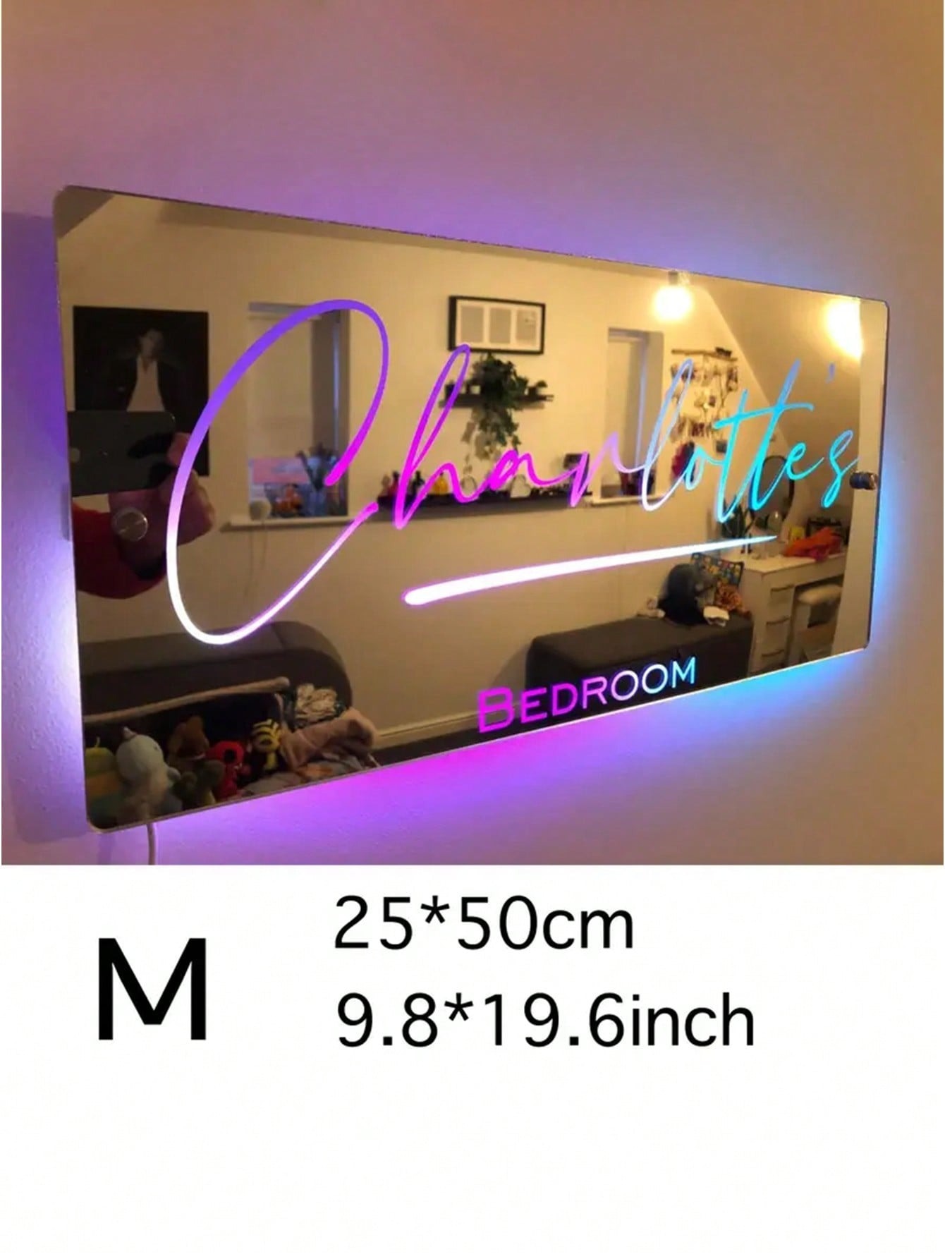 Transform your wall into a glowing statement piece with our personalized LED name mirror—custom text, sleek mirror finish, and vivid lighting.