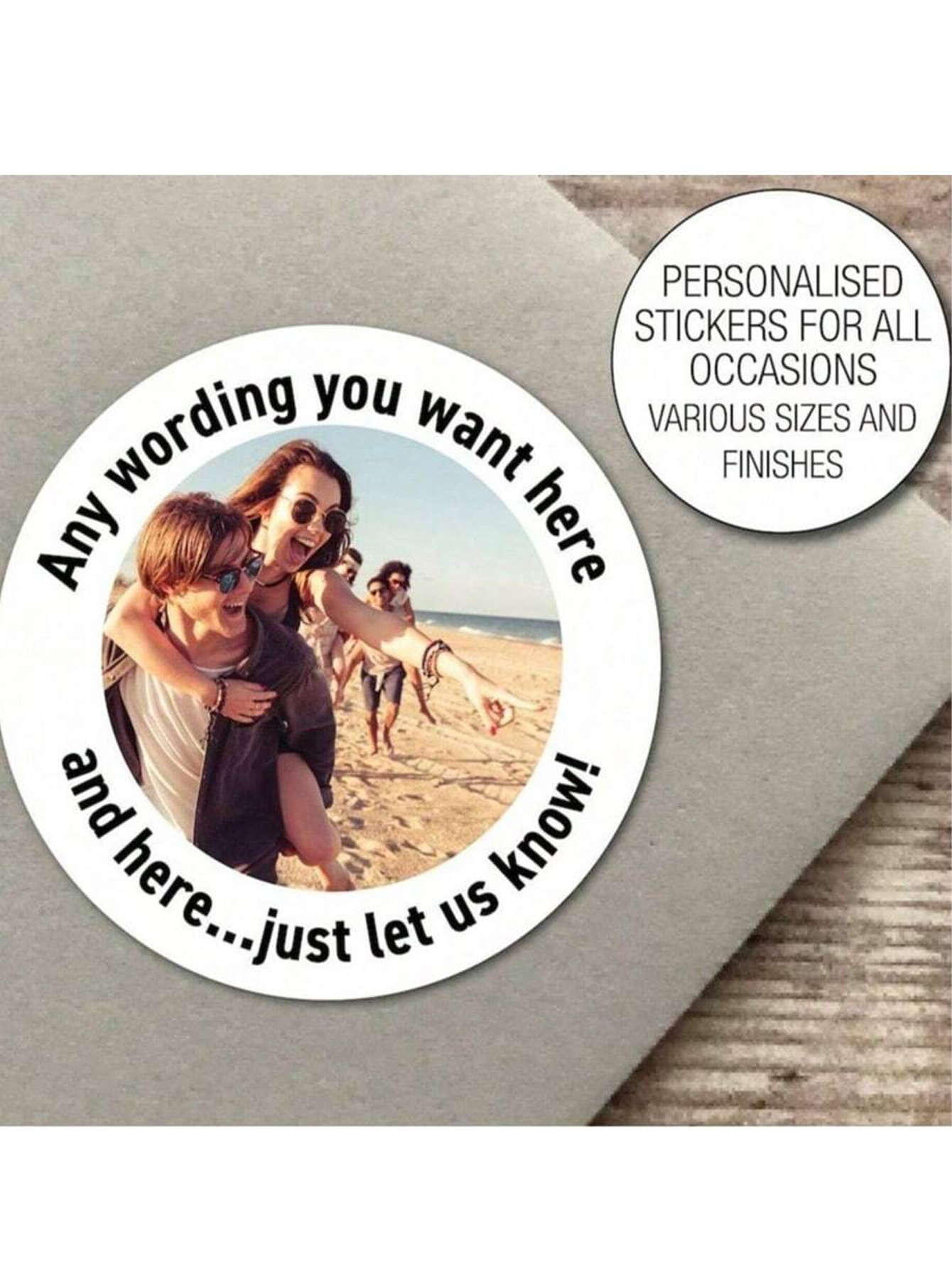 Add a personal touch to your special events with our Custom Photo Sticker Labels. Perfect for weddings, birthdays, or any celebration, these customizable stickers let you upload your own photos and text for a truly unique design.