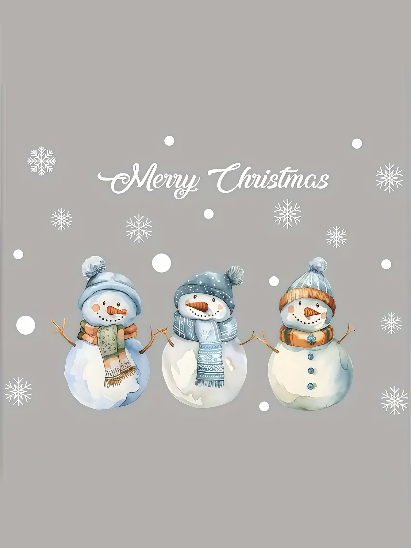 Includes 3 cheerful snowmen, snowflakes, and “Merry Christmas” text