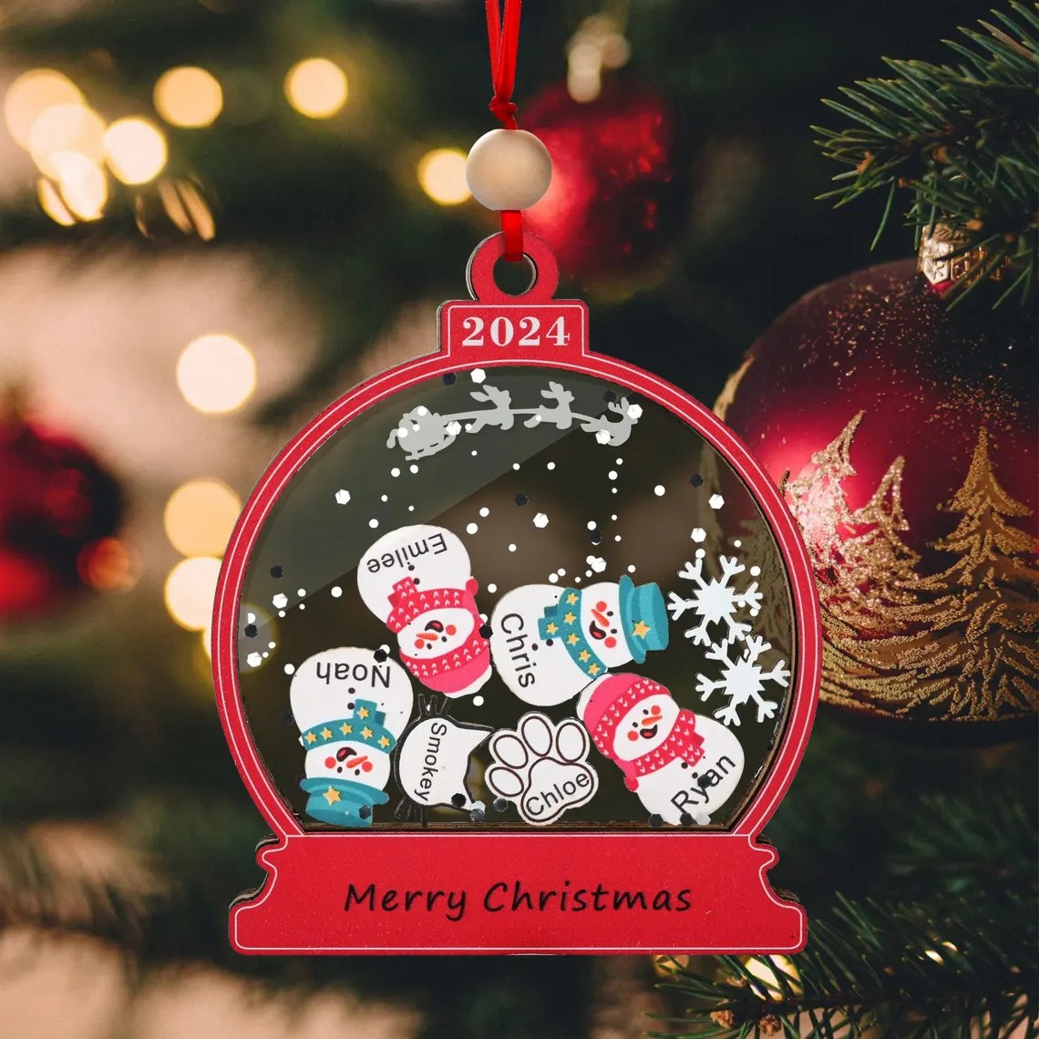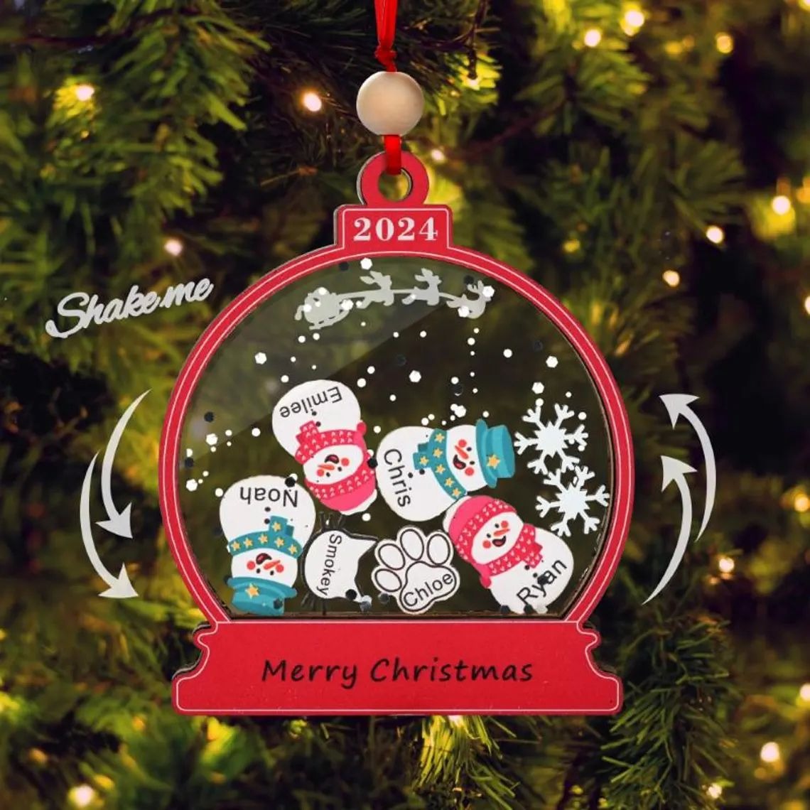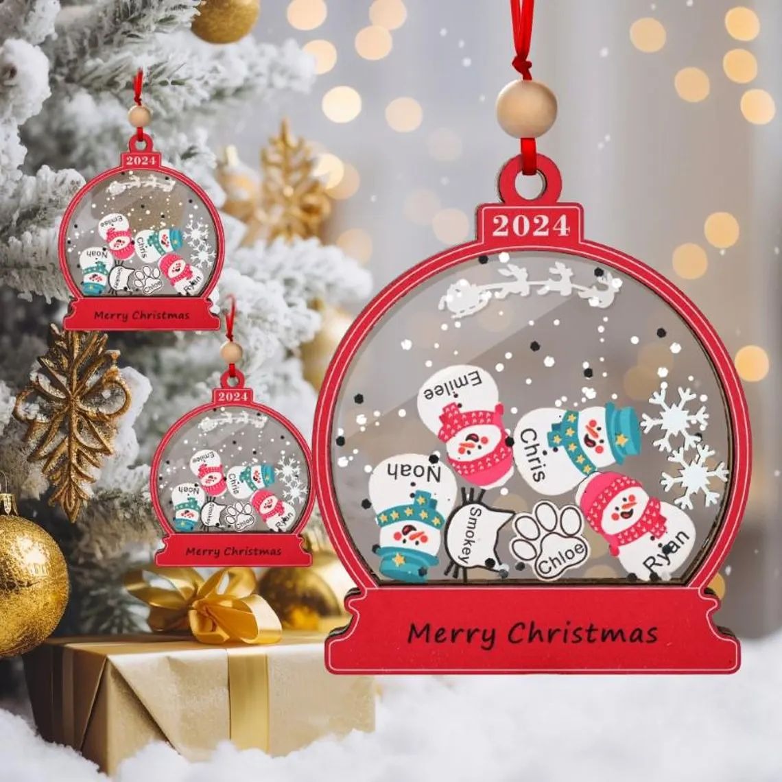 Bring everyone together on one keepsake with our Custom Snowman Family Doorplate Ornament, available at Kstom. This charming piece combines a warm wood base with a crystal‑clear acrylic window for a classic snow‑globe look. Inside, each little snowman (and optional cat or dog paw) carries a name, while the top banner highlights 2024. The lower plaque reads “Merry Christmas,” or you can personalize it with your own short greeting.