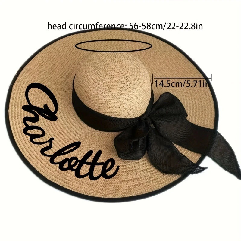 Turn heads this summer with a custom summer sun hat that’s as practical as it is chic. Made from breathable woven straw, this wide-brim hat features a beautiful black ribbon bow and your personalized name embroidered along the brim.