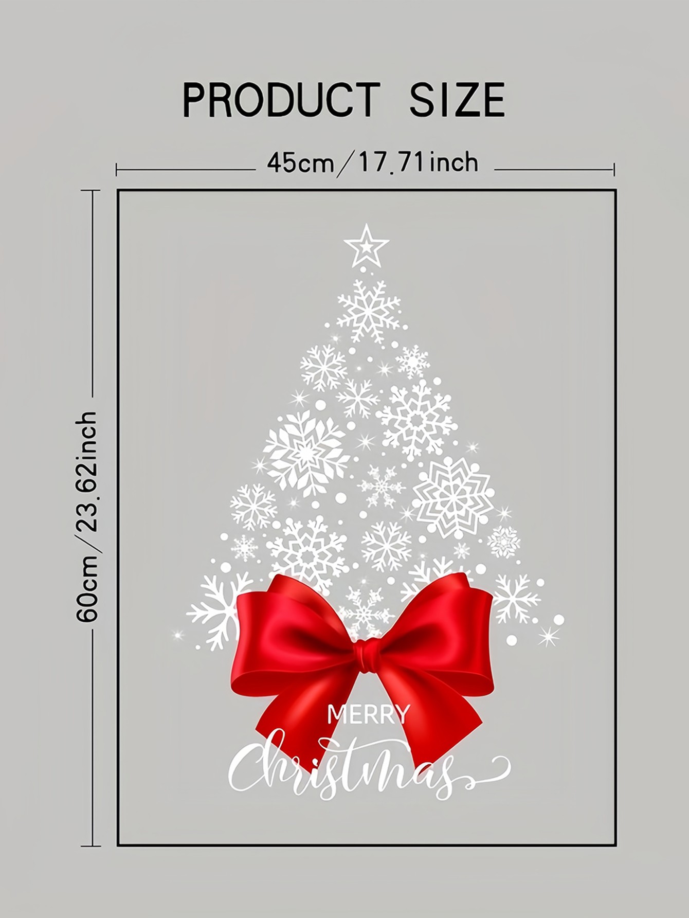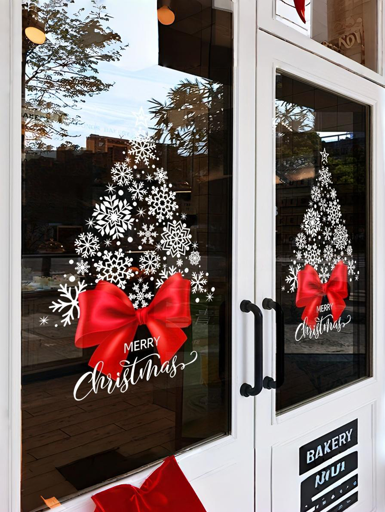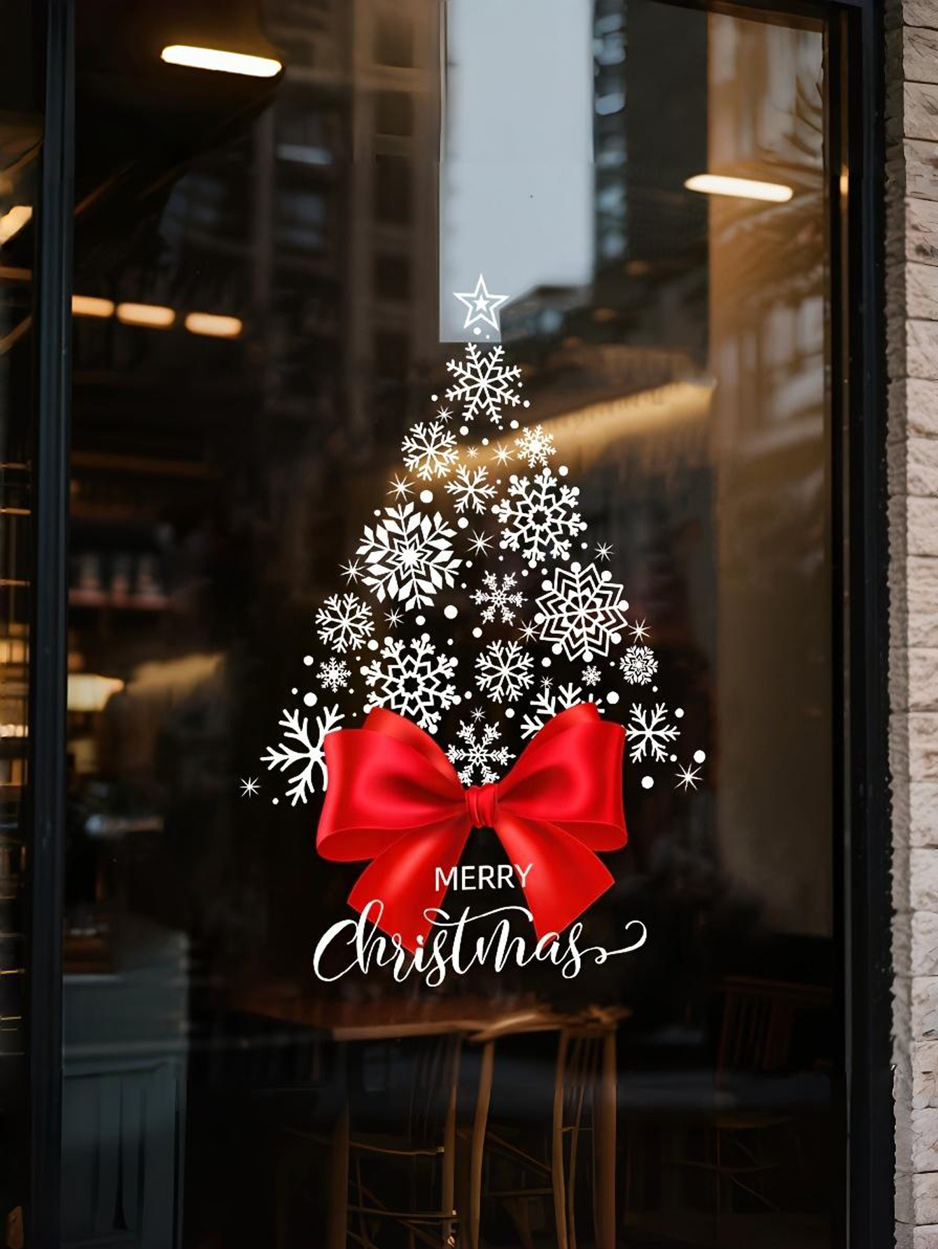 Transform your windows into a magical holiday display with the Customizable Snowflake Christmas Tree Sticker. Designed with a snowflake-shaped tree topped with a star and accented by a vibrant red bow, this decoration instantly adds festive charm to any space.