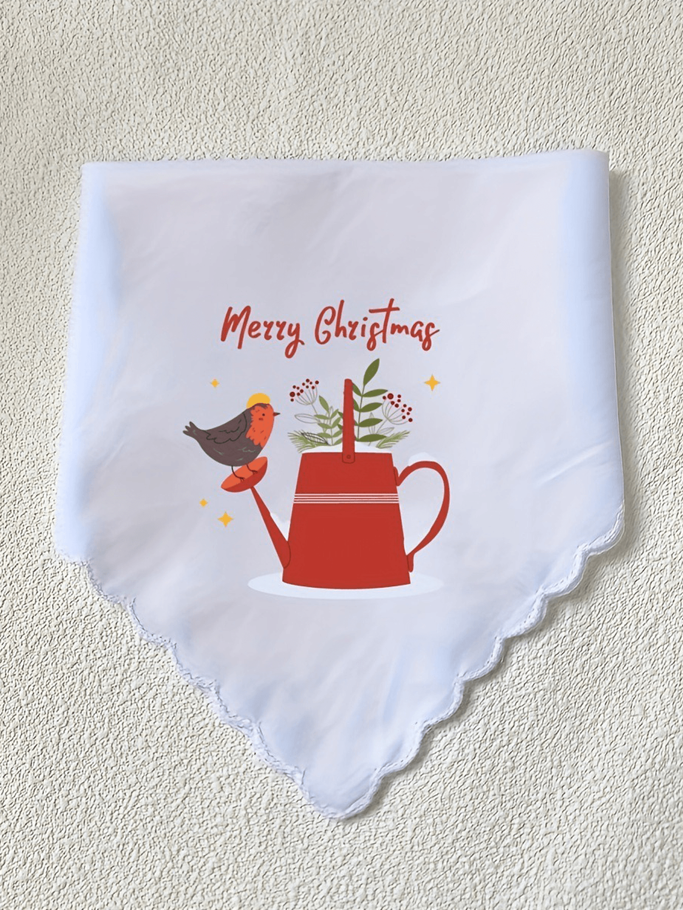 Make this Christmas even more special with the Custom Christmas Handkerchief. Designed with beautiful festive prints—such as cozy watering cans, winter robins, poinsettias, and holiday lanterns—this handkerchief brings warmth and cheer to the season.