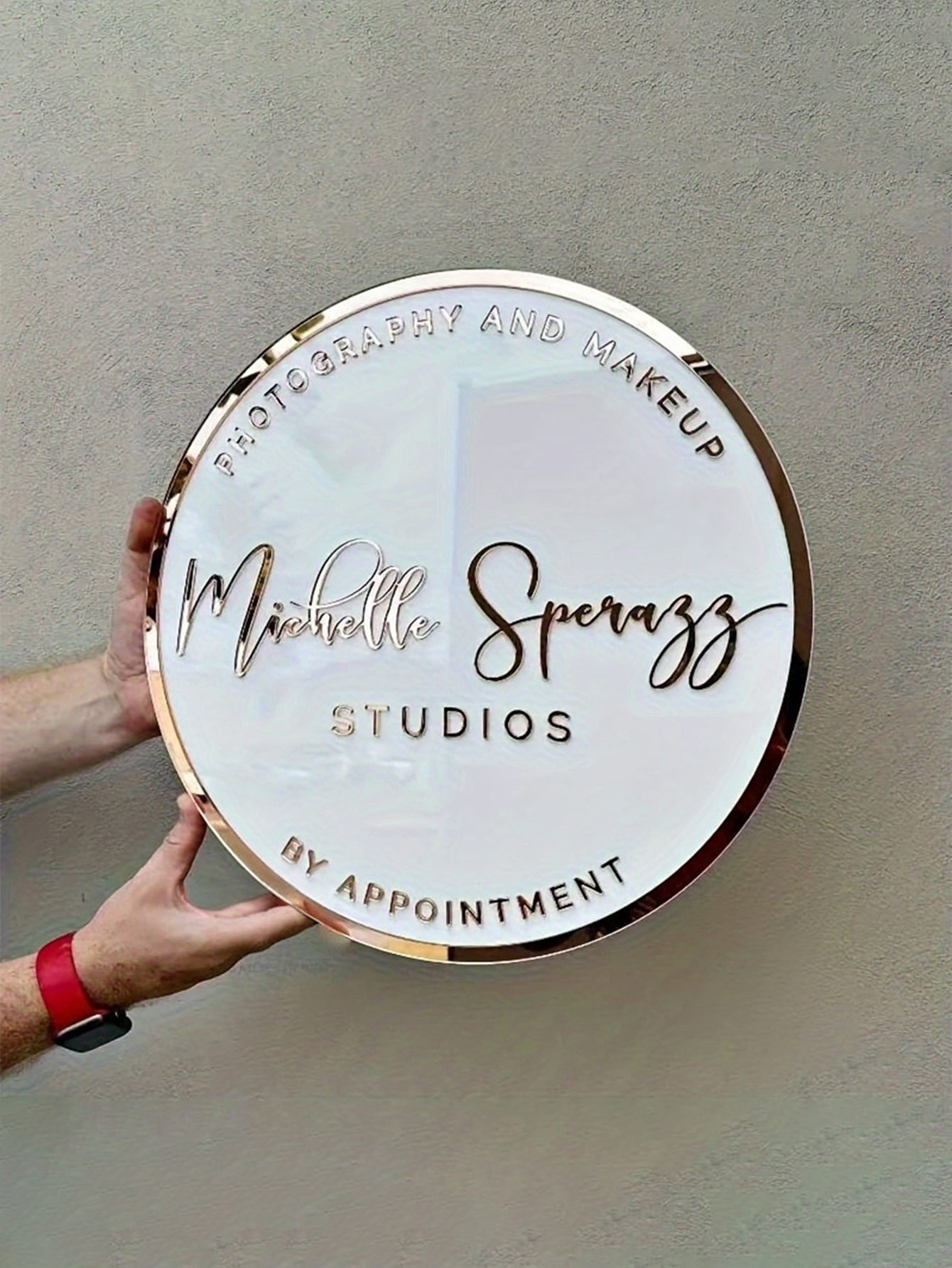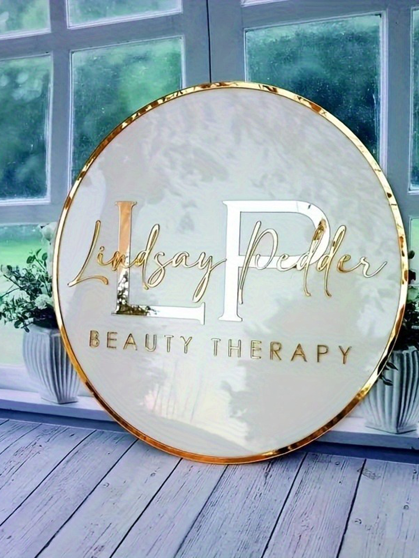 The large round shape provides maximum visibility, making it ideal for storefronts, beauty salons, corporate offices, photography studios, or event displays. Personalization options include your business name, logo, or tagline — creating a unique branding piece that captures attention instantly.