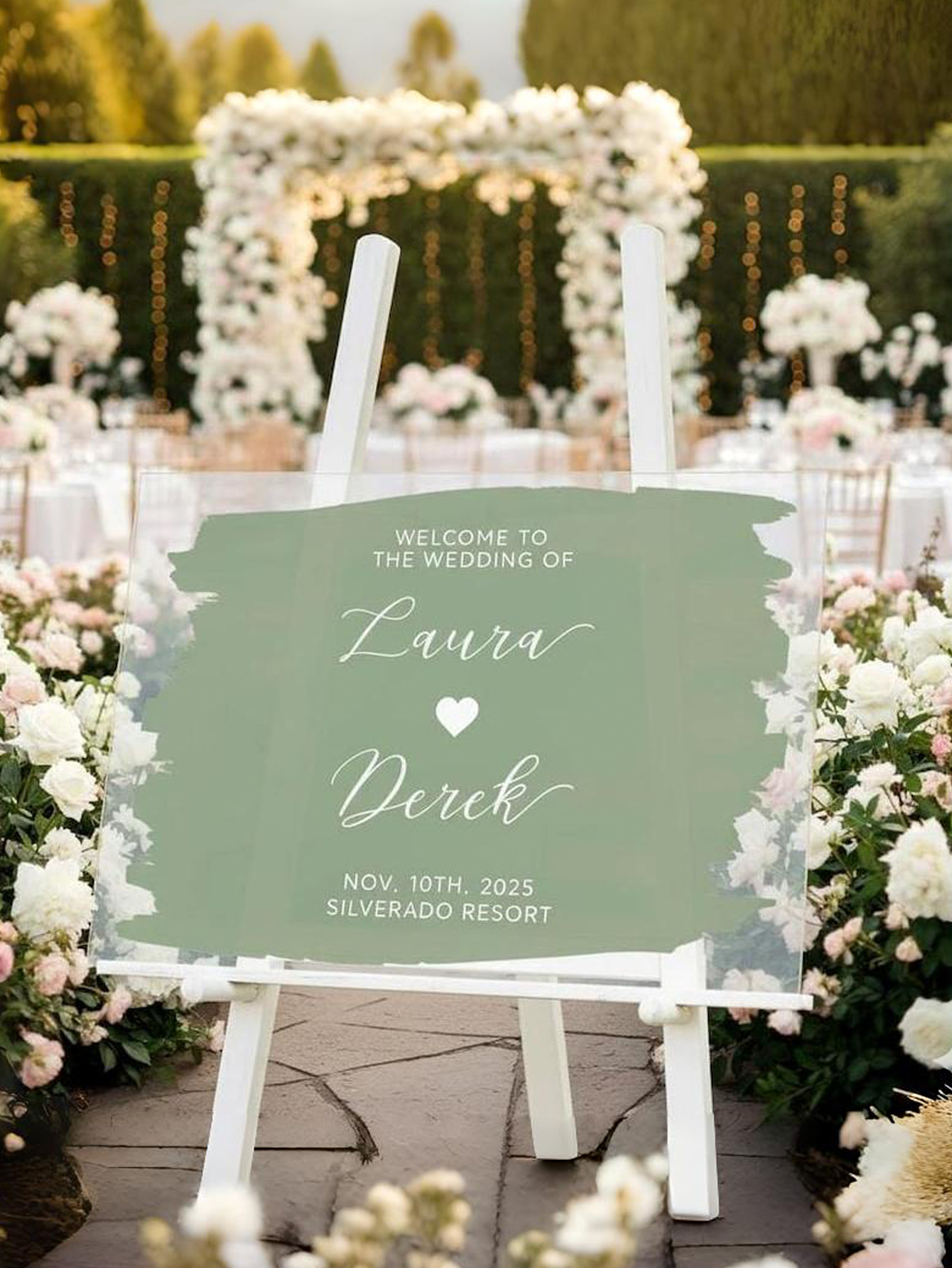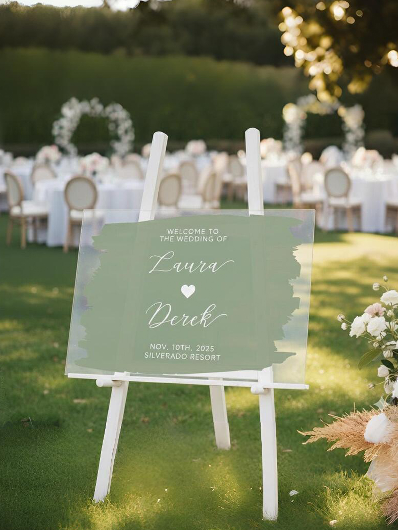 Crafted from premium clear acrylic, the sign offers a sleek, modern look that complements any wedding theme—from rustic to contemporary. You can personalize it with your names, wedding date, and venue details, making it a unique piece that reflects your love story.