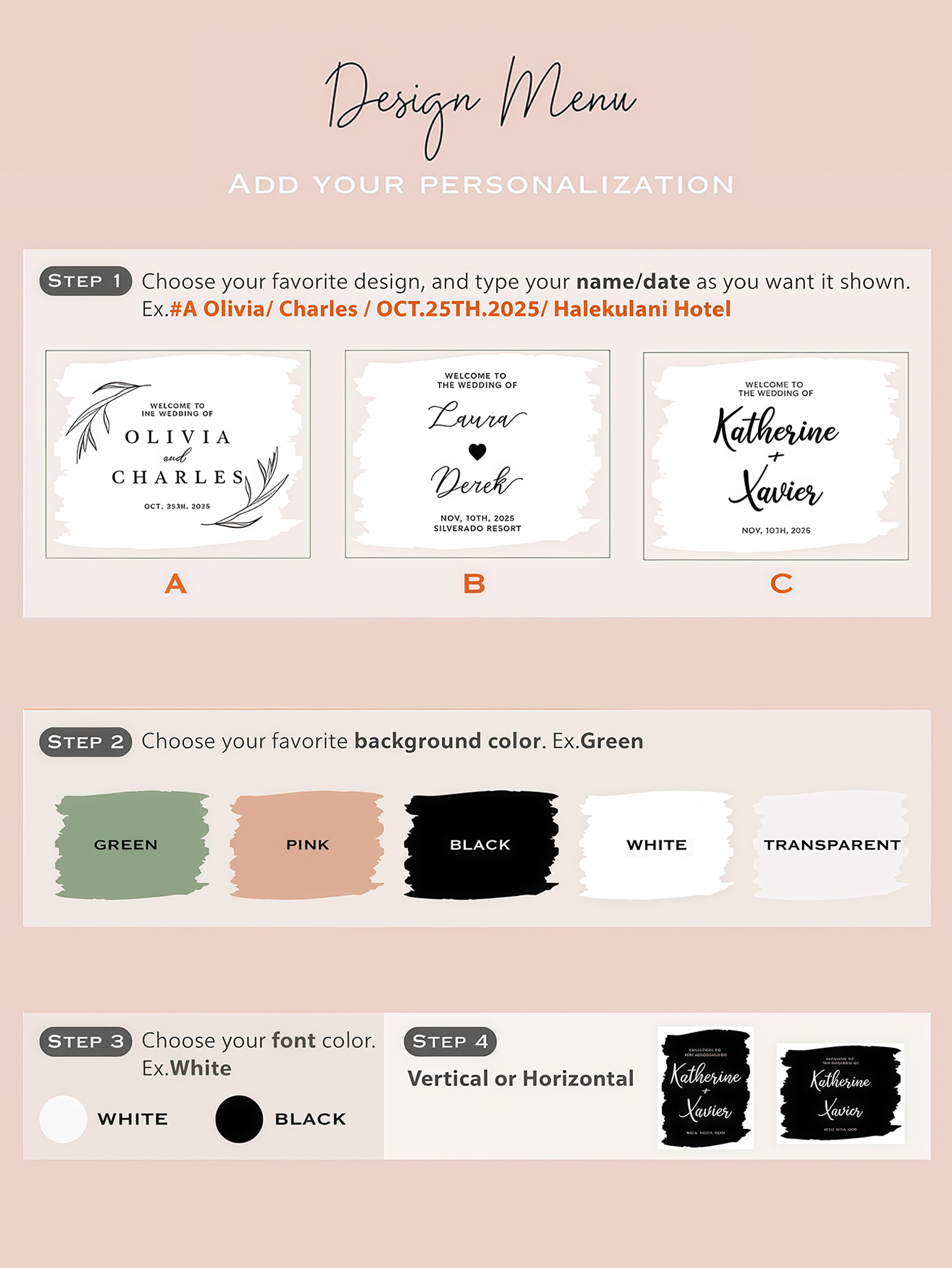 With multiple size options (14” x 11”, 18” x 14”, 24” x 16”, 30” x 18”), it’s versatile enough for intimate gatherings or grand celebrations. Display it on an easel at your ceremony entrance, reception hall, or photo backdrop to create a lasting impression.