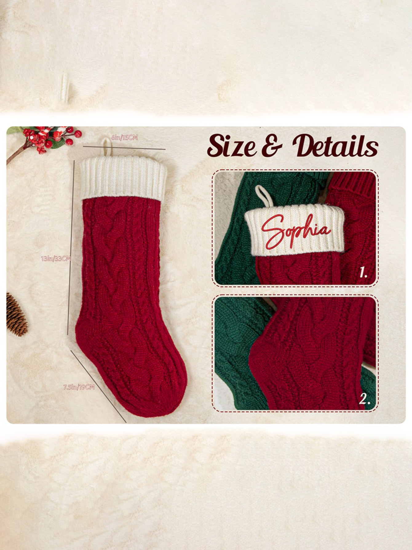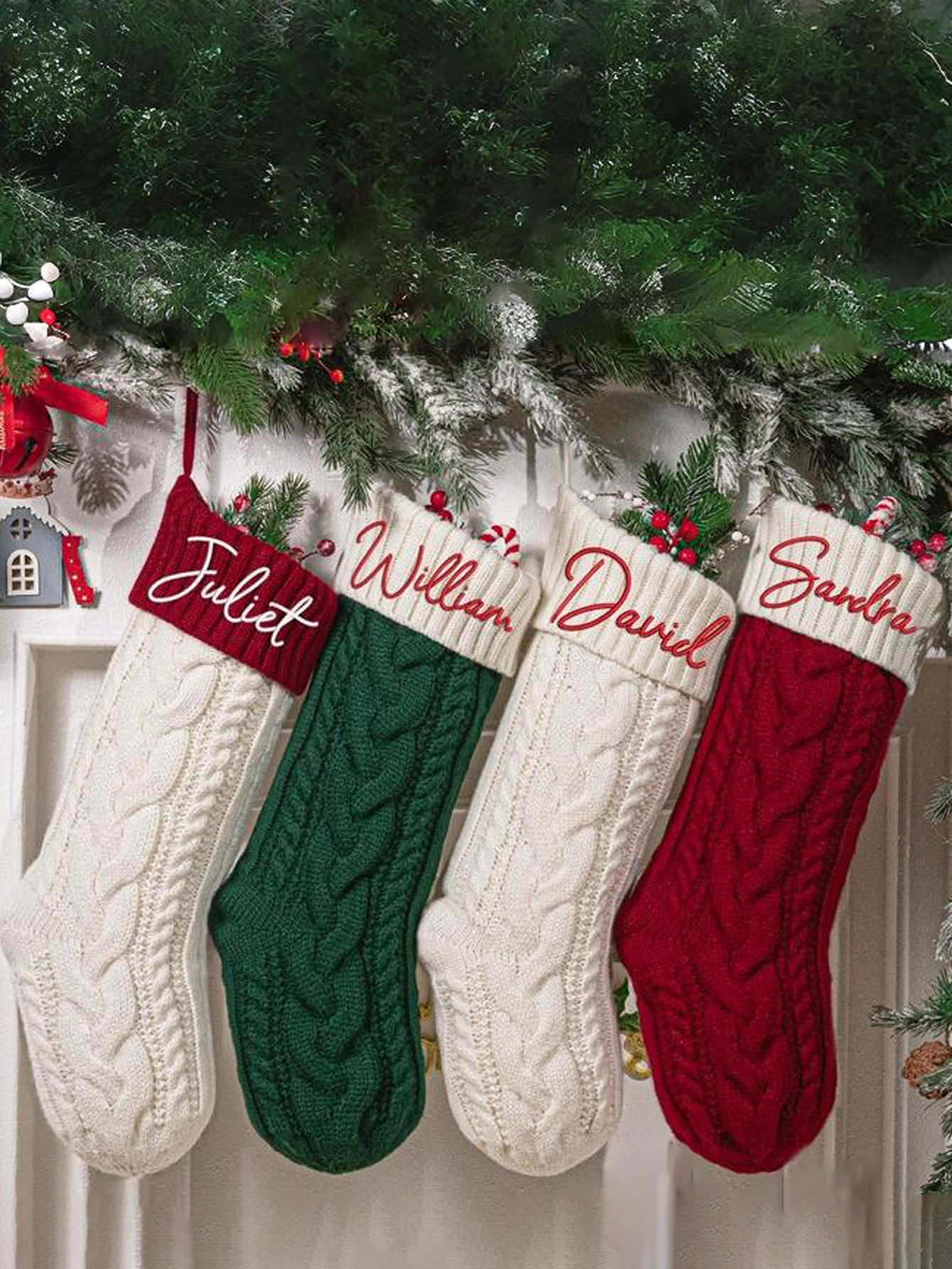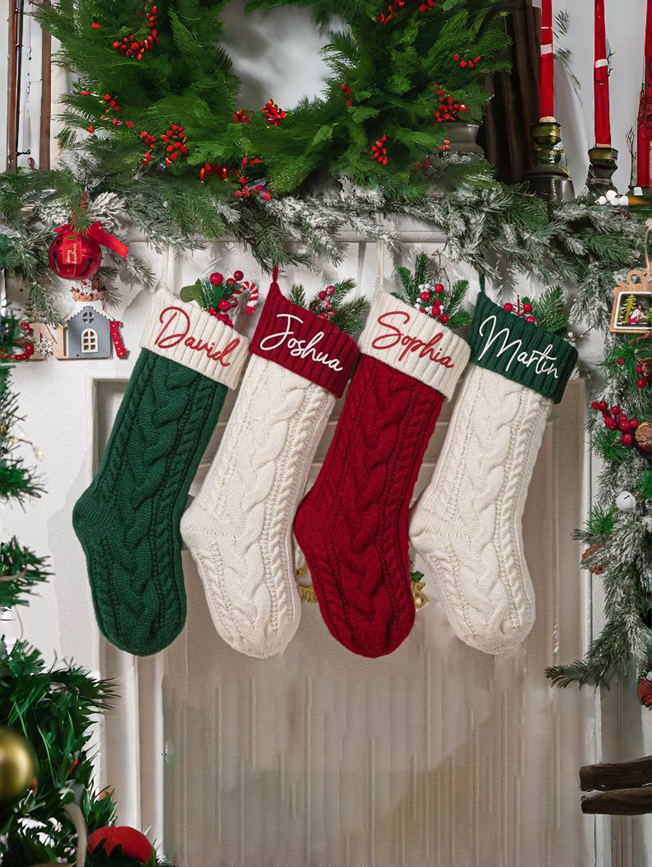Crafted with care, these stockings come in traditional Christmas colors like red, green, and cream, with a soft knit texture that feels warm and inviting. The high-quality embroidery ensures names stand out clearly, creating a stocking that’s as unique as the person it belongs to.