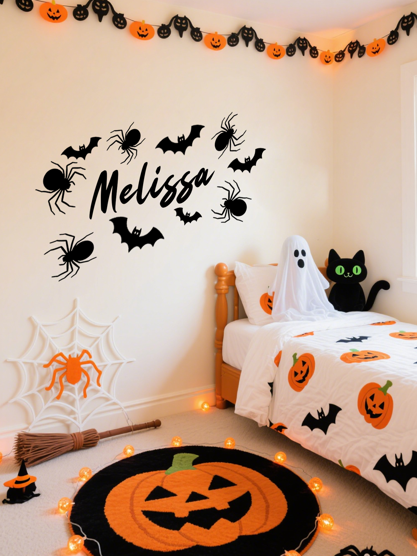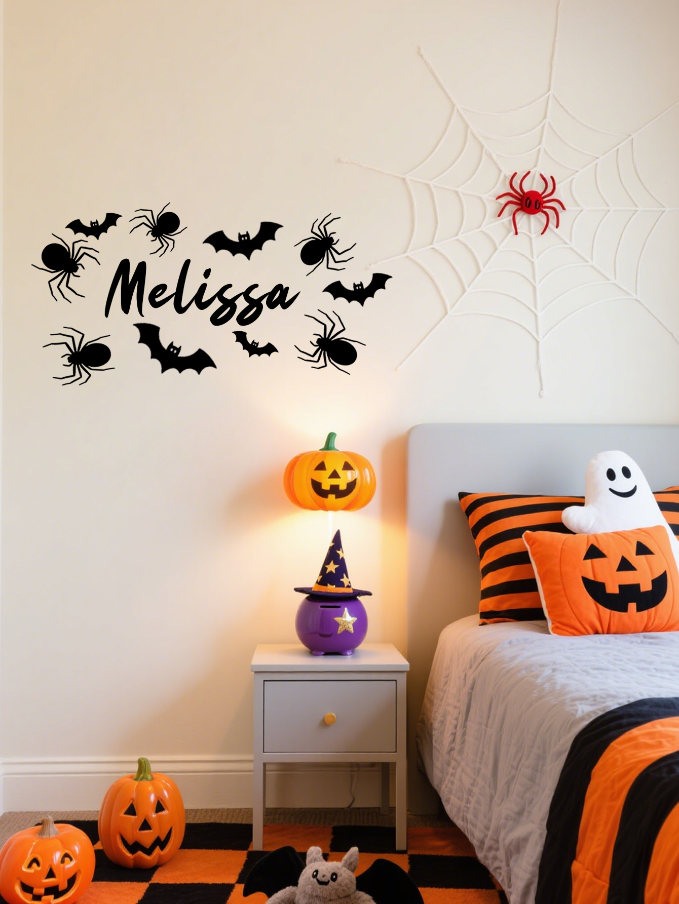 Add a spooky, personal touch to your Halloween décor with these fun and customizable bat and spider wall stickers.