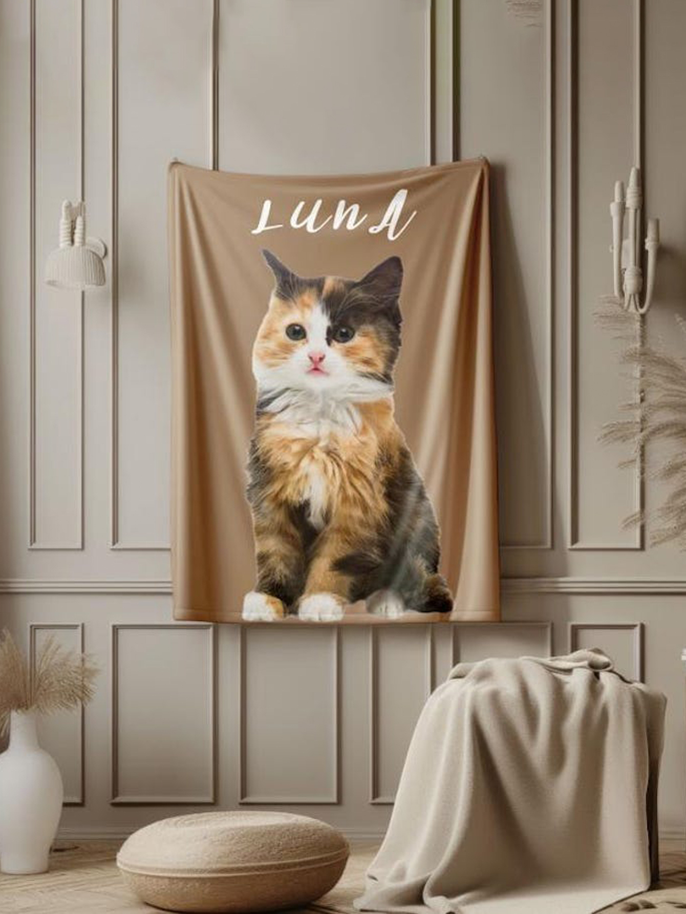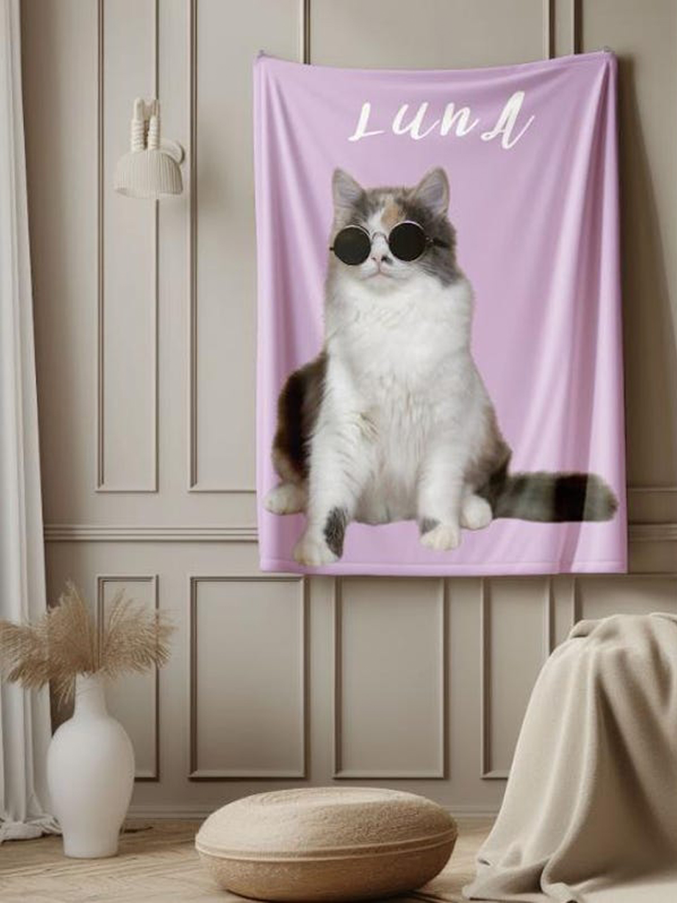 Turn your favorite pet photos into a soft, hangable blanket that’s perfect for cuddling or displaying as wall art.