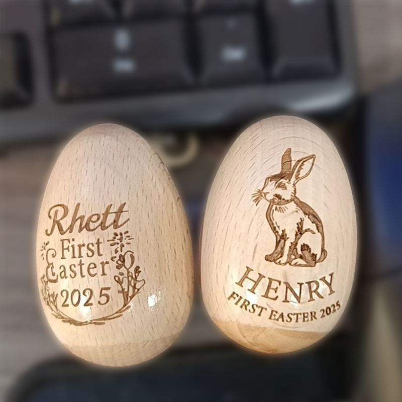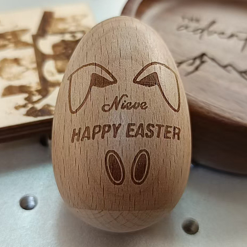 Personalized carved wooden Easter egg, natural wood color beech wood simulation egg