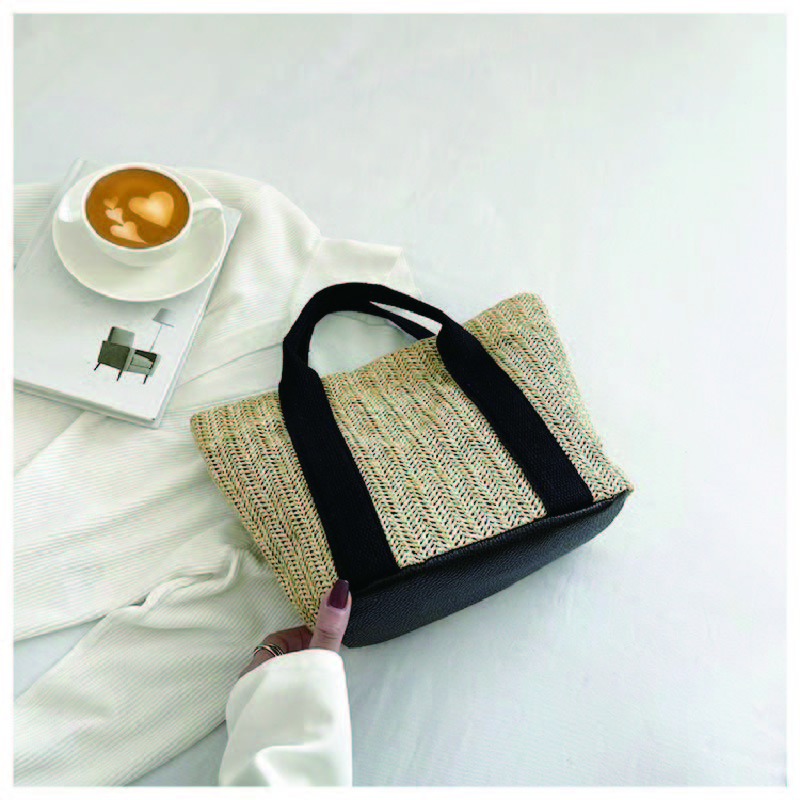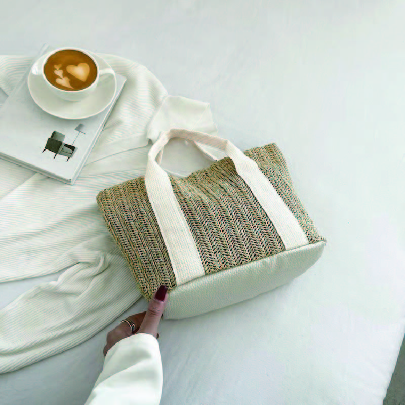 Large capacity woven bag, single shoulder diagonal cross grass woven bag