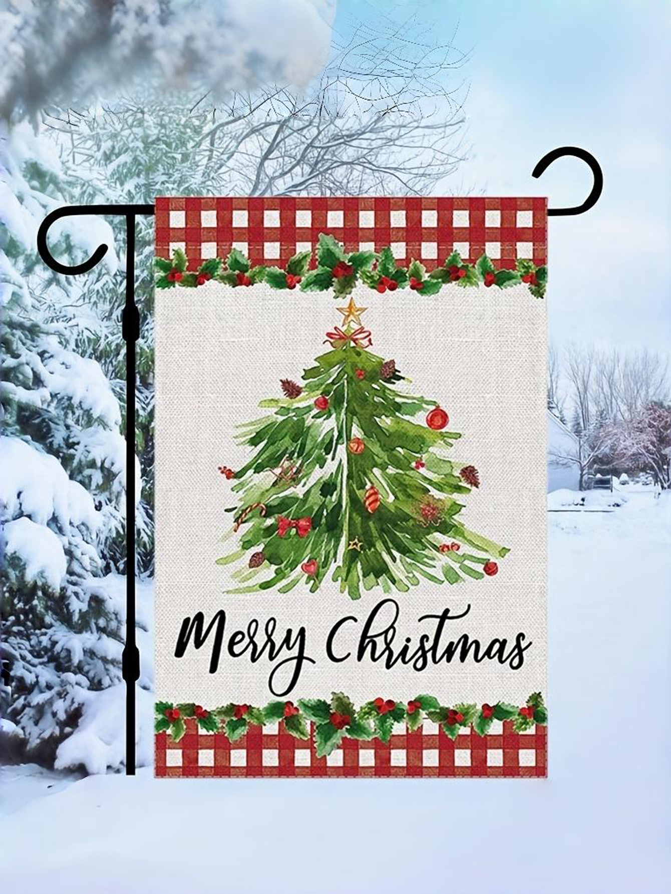 Celebrate the season in style with the Christmas Tree Happy Garden Flag from Kstom. Featuring a colorful Christmas tree and charming holiday details, this festive banner brings warmth and joy to any outdoor space.