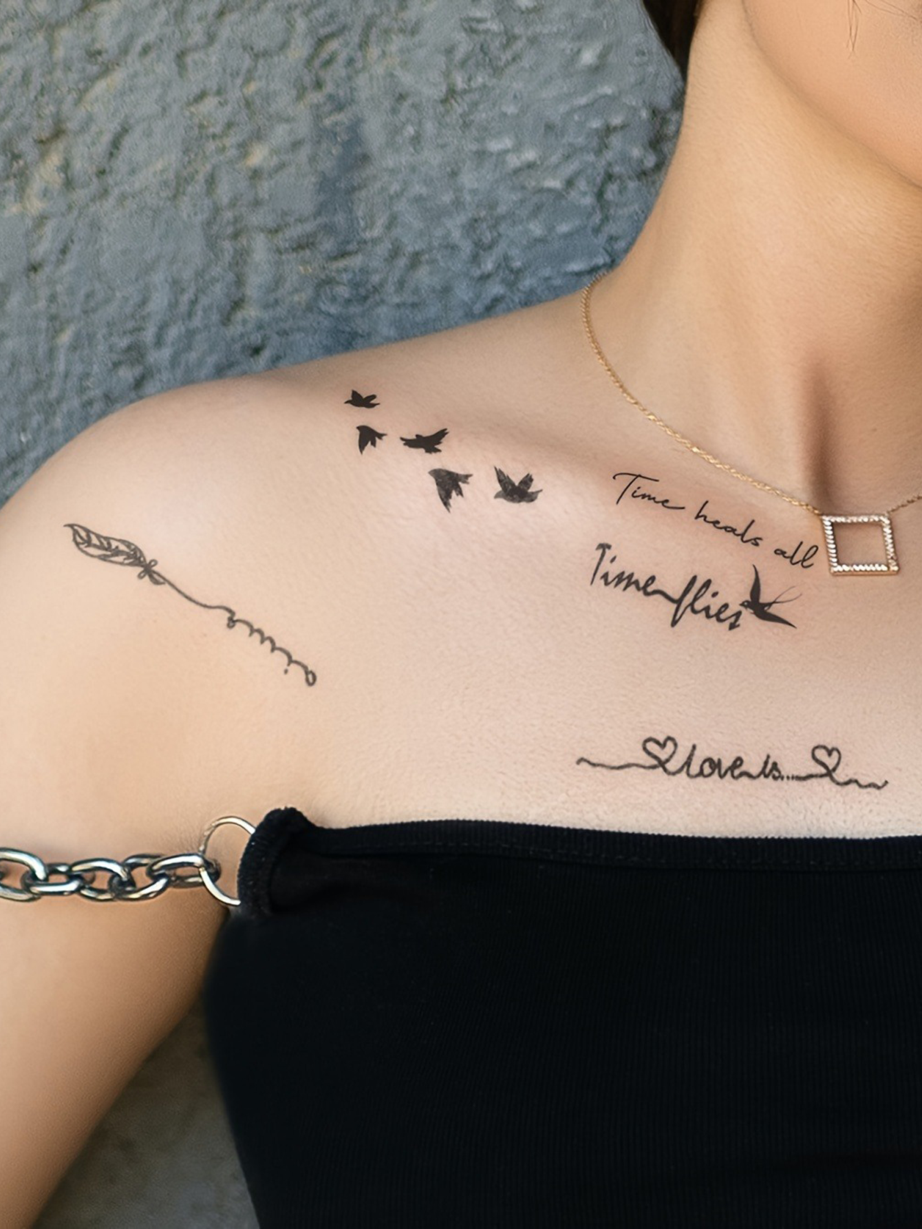 Each sheet includes a mix of minimalist and trendy designs such as hearts, birds, waves, butterflies, and inspiring quotes—giving you plenty of options to match your mood. Whether you’re heading to a festival, a night out, or just want to try something new, these tattoos let you experiment with creative looks safely and easily.