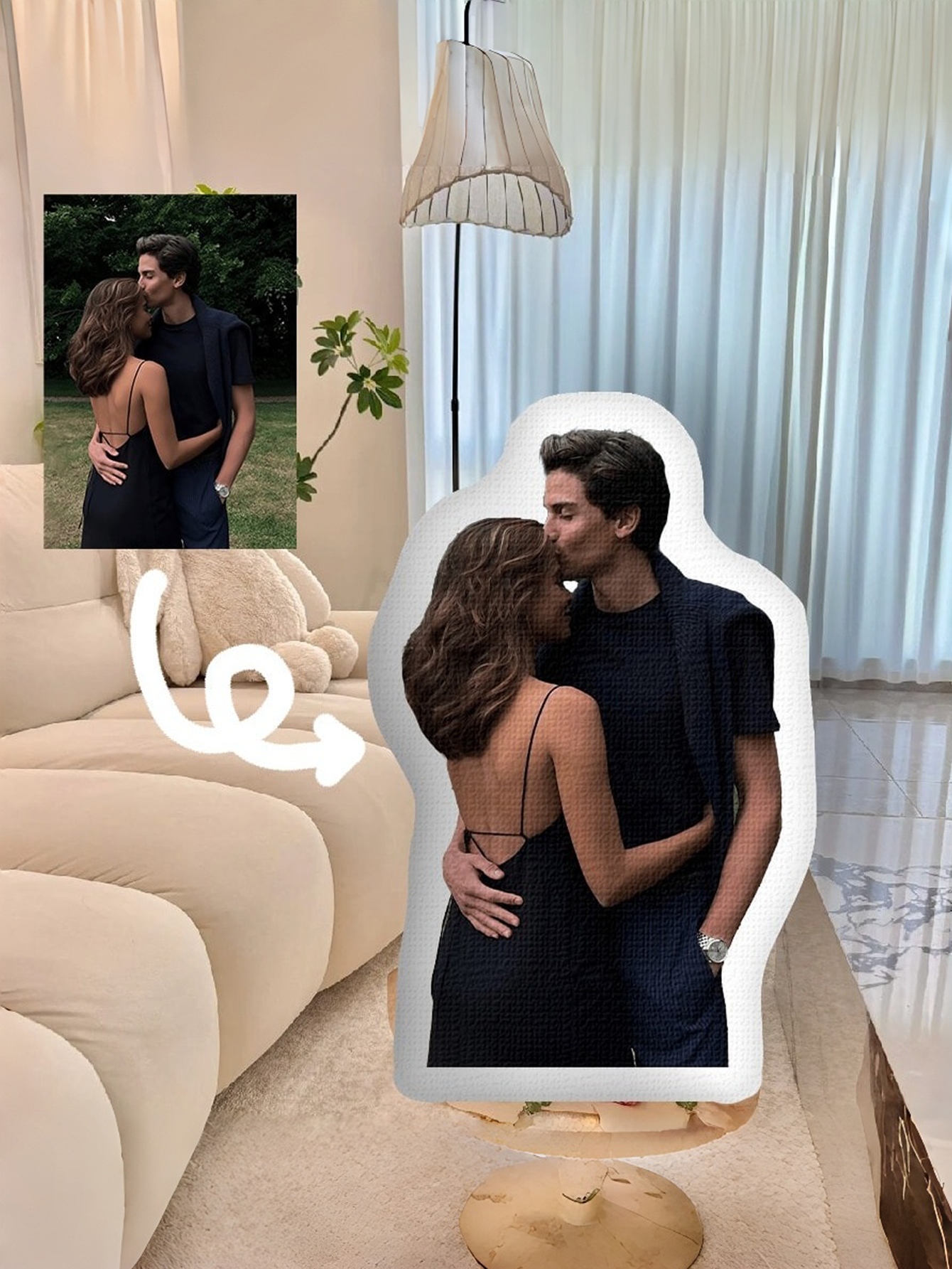 You can also add custom text, such as names, dates, or a short message, to make it even more special. The pillow is cut to the exact shape of your image, creating a lifelike and artistic effect that stands out beautifully on sofas, beds, or chairs.