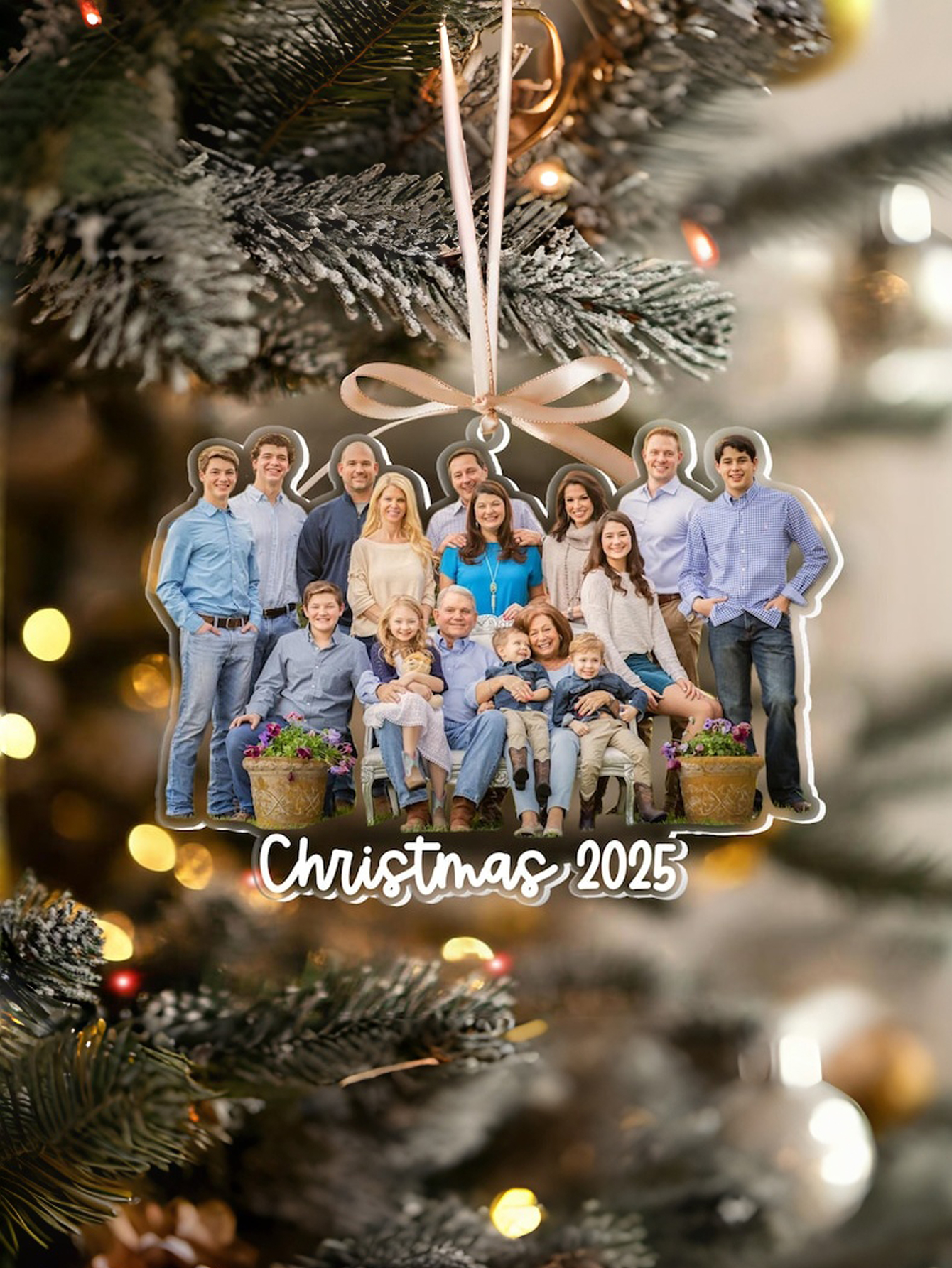 You can personalize it with both your family photo and custom text — like “Christmas 2025,” your family name, or a heartfelt message. Available in three sizes (3", 4", and 5"), it’s perfect for any tree size or wall display.