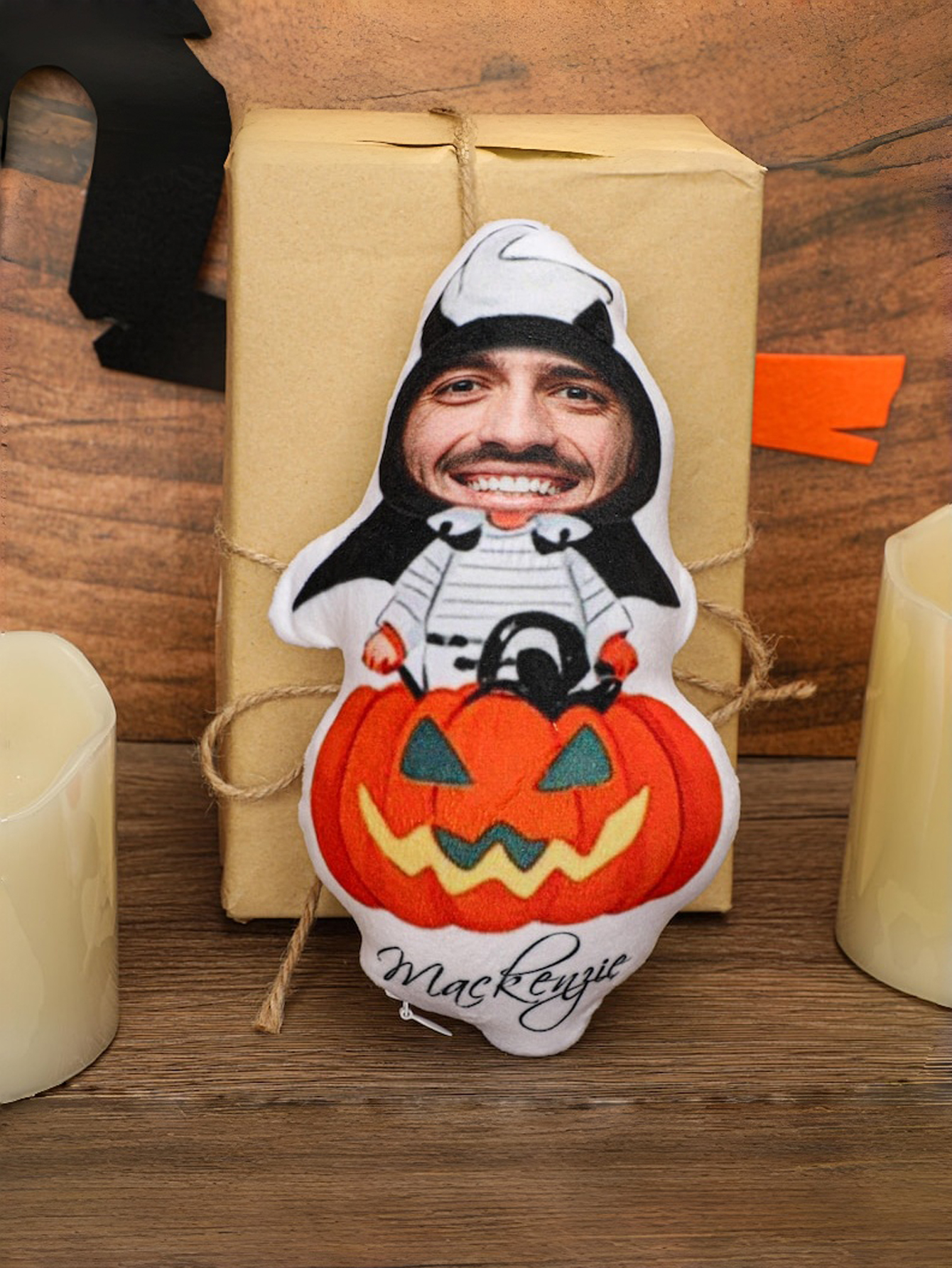 Simply upload your favorite photo, pick from six adorable Halloween styles — from the pumpkin monster and witch to the cheeky little devil — and we’ll turn it into a soft, huggable pillow featuring your face. You can even add your name or a short message to make it truly personal.