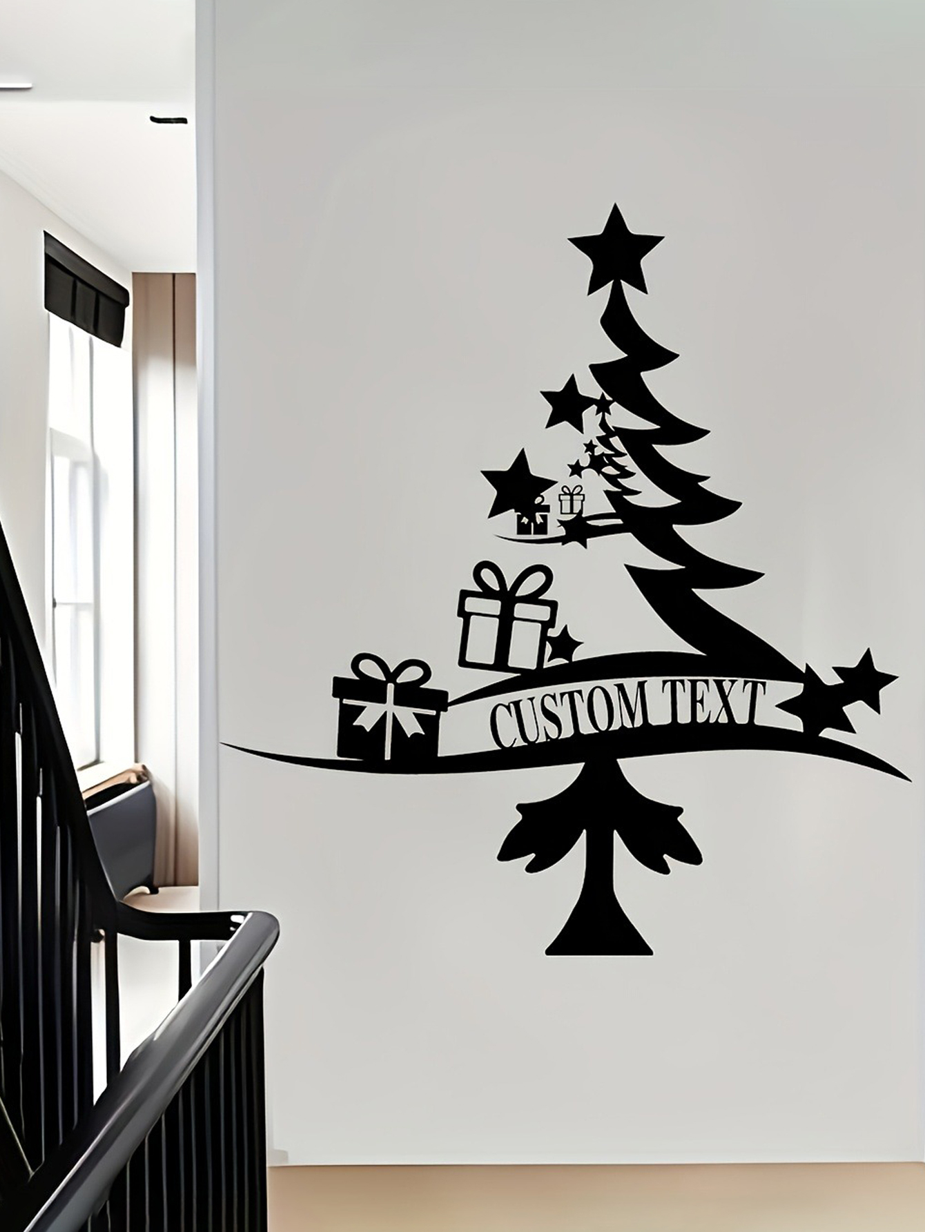 Celebrate the holidays in style with this modern metal Christmas tree wall decoration, customized with your own text.